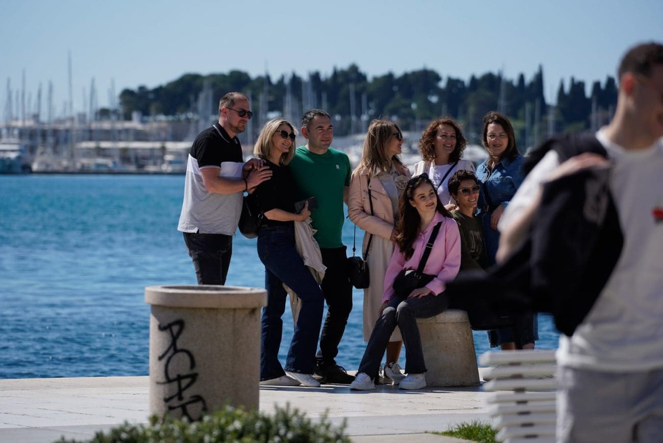 Turisti, koji su još uvijek rijetki početkom četvrtog mjeseca, uglavnom traže sunčane trenutke i ljepotu Dioklecijanove palače.
