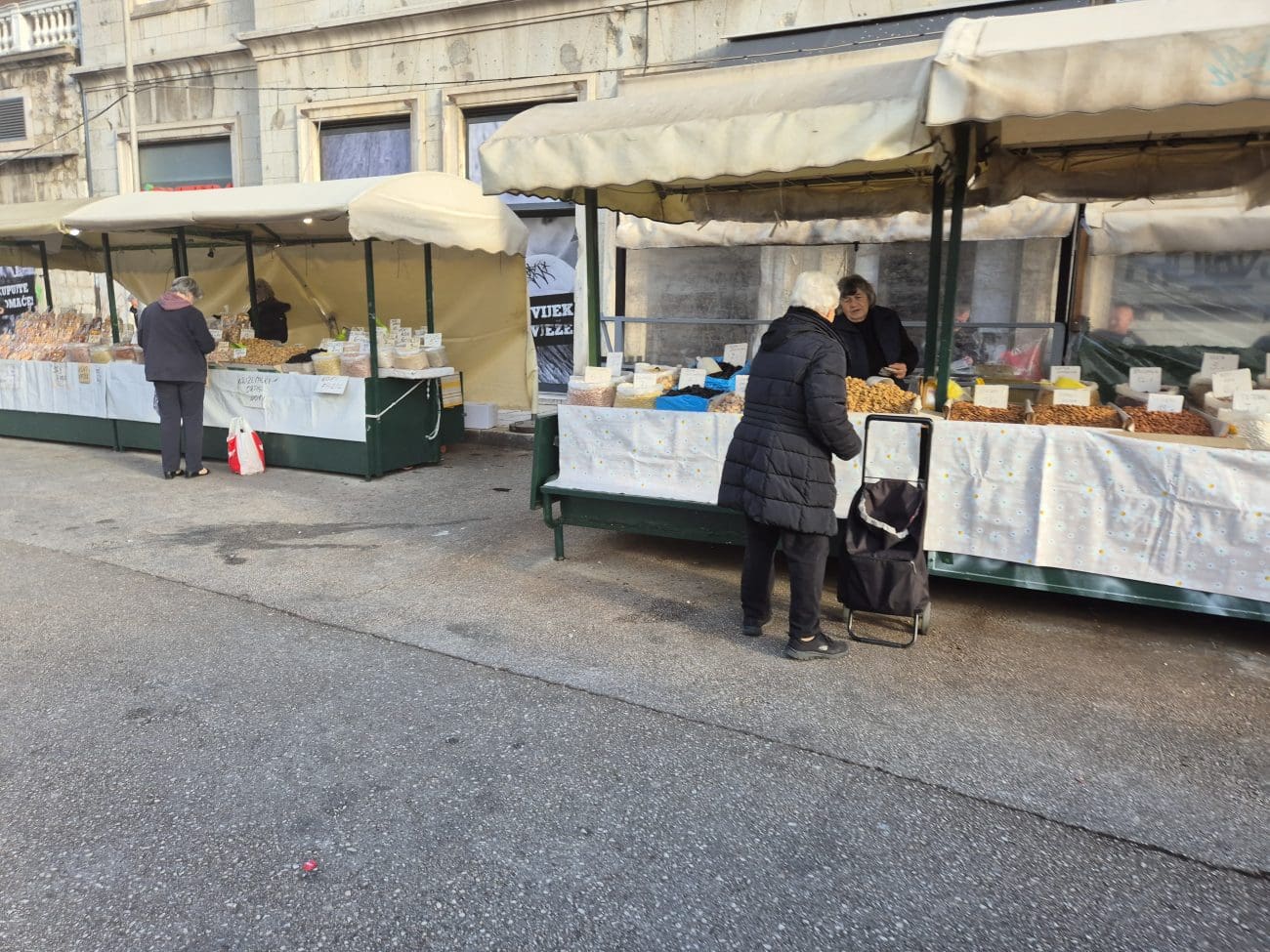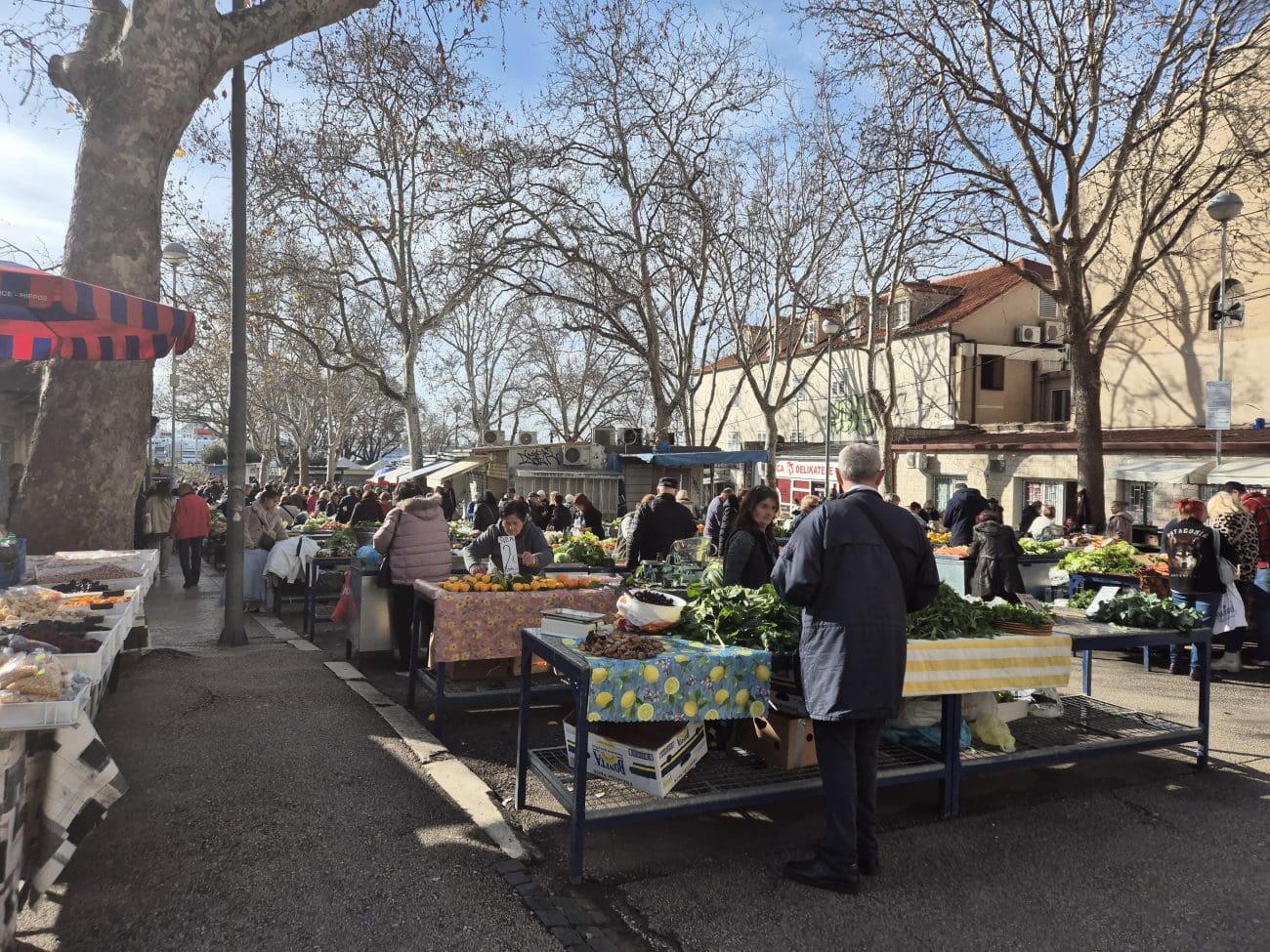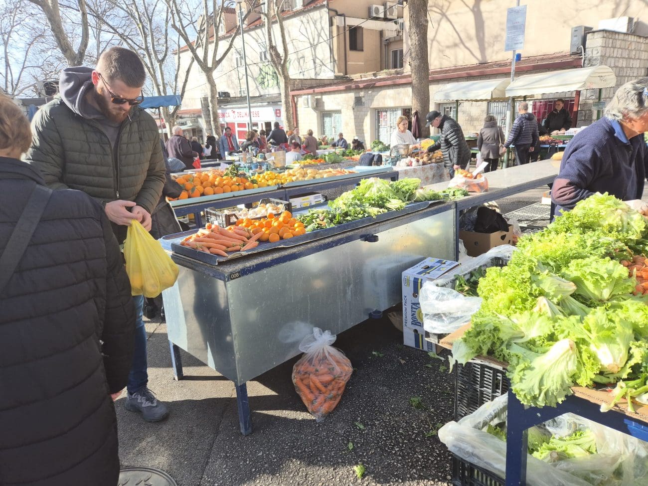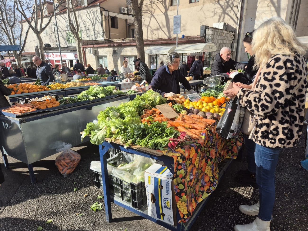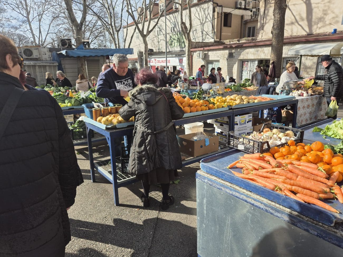 Već od ranog jutra svi štandovi rade punom parom. Od ljudi se jedva prolazi, a svi su u potrazi za najboljim komadom voća i povrća, kao i za najboljom cijenom.