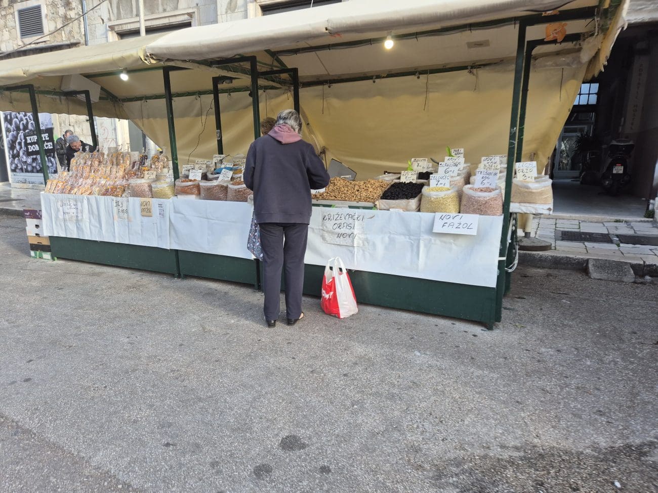 Kao i svako jutro, i subota garantira šušur na Pazaru, ako ne i veći nego tijekom tjedna. Nezaobilazna je to stanica u Splitu, pogotovo na lijepo subotnje jutro kada se treba obavit spizu, a sigurno se nakon jučerašnjeg bojkota trgovačkih lanaca trebao riješiti ručak za vikend.
