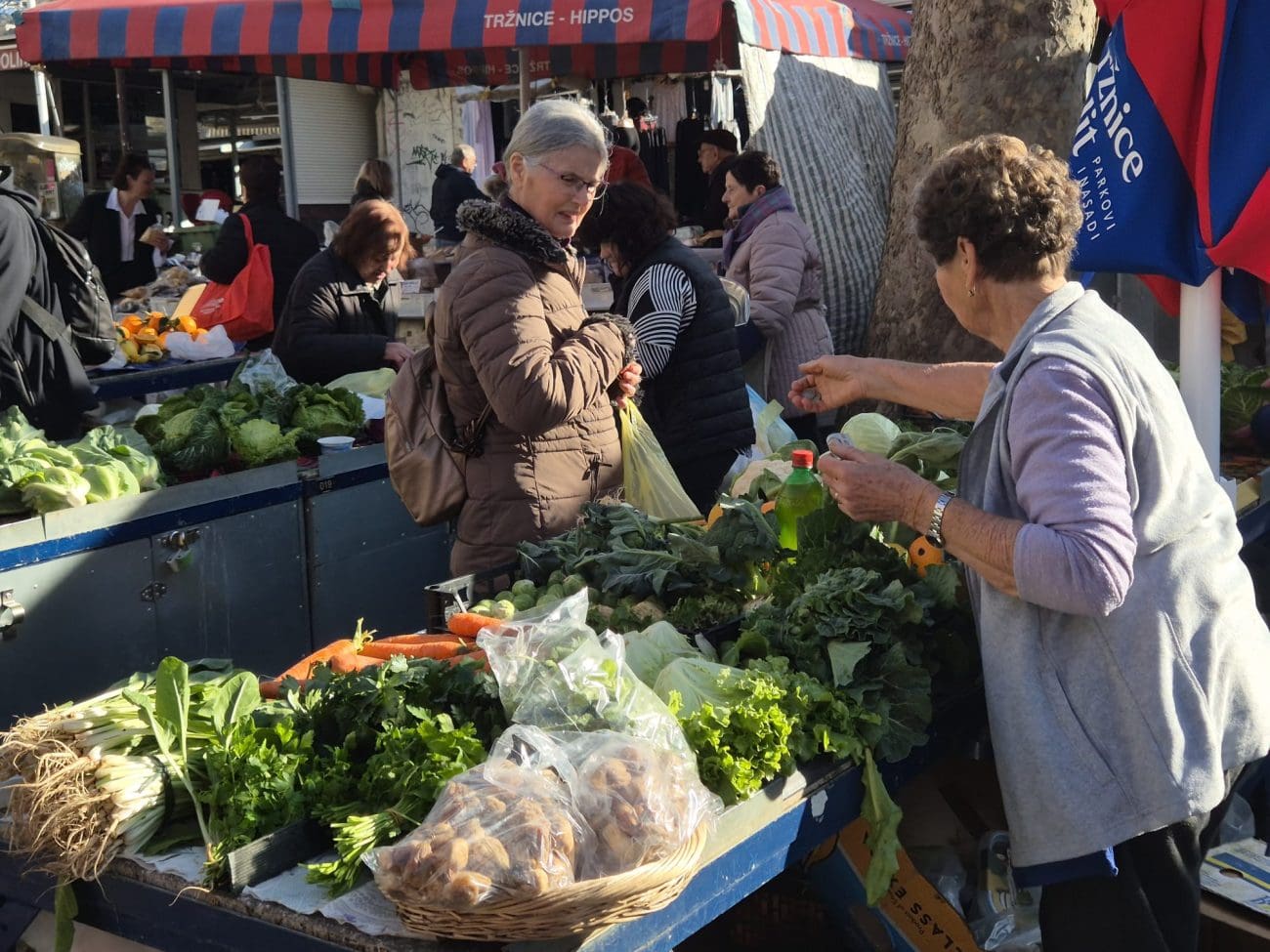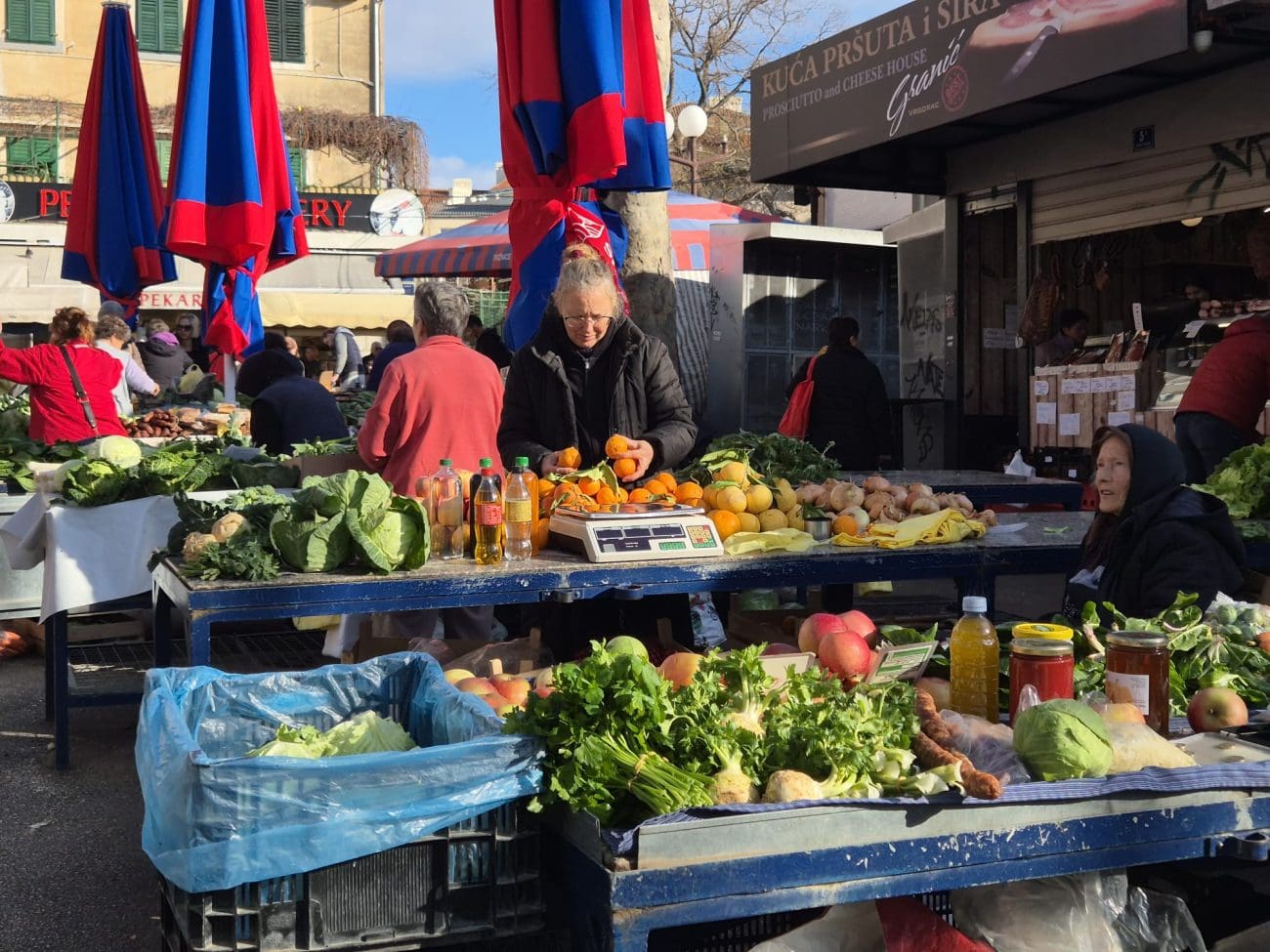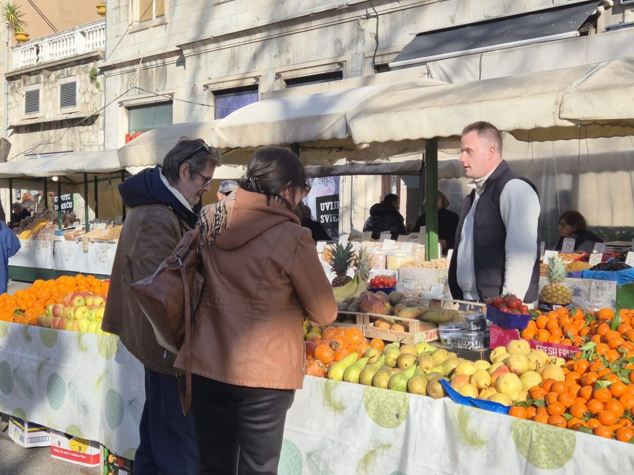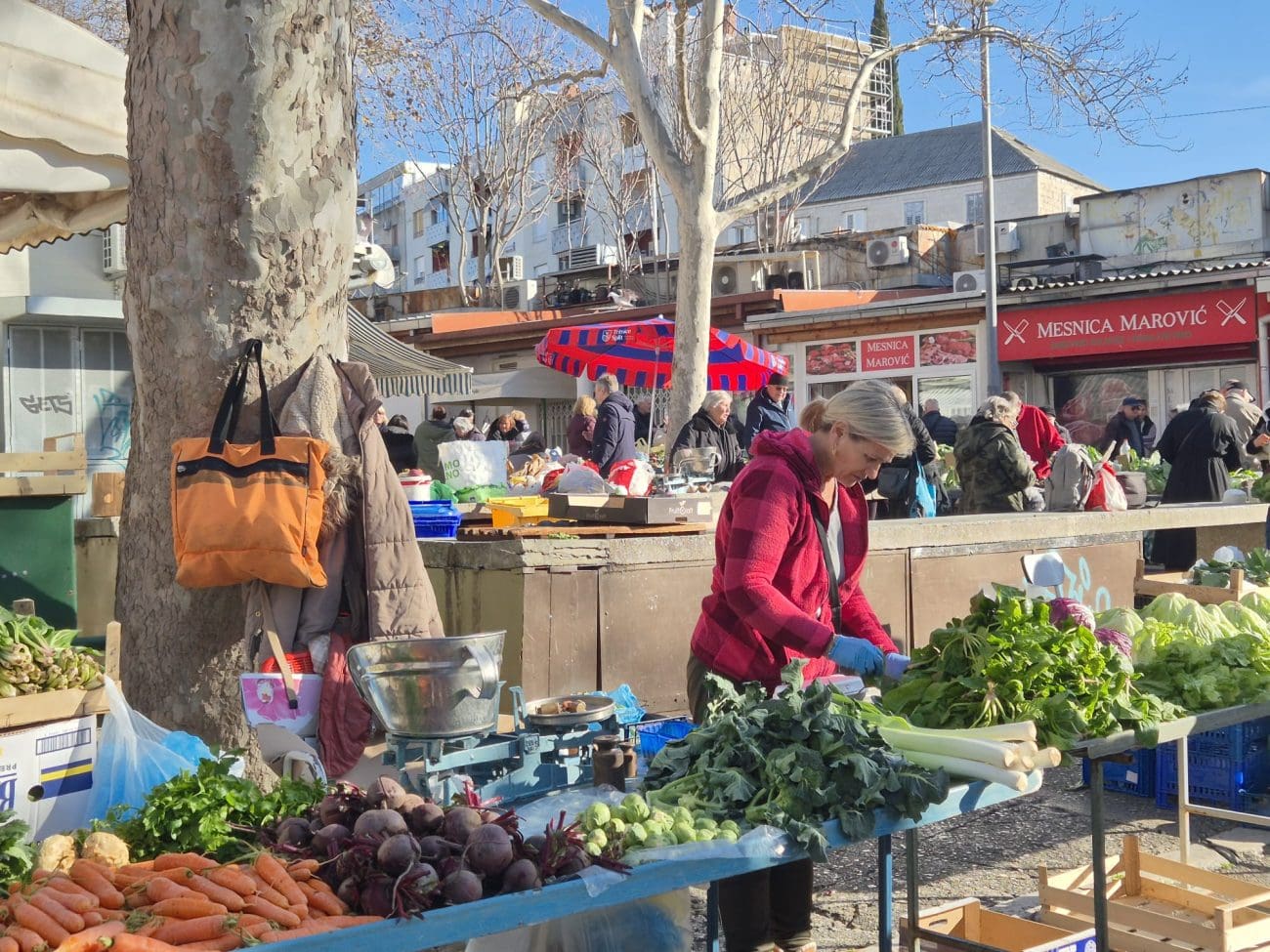 Na većini štandova dominira sezonsko voće, a agrumi su ovog vikenda posebno traženi. Mandarine se nude po cijeni od 1,5 eura po kilogramu, dok su klementine nešto skuplje — 3 eura. Naranče stoje 3 eura po kilogramu, a limun se prodaje po 2,5 eura.