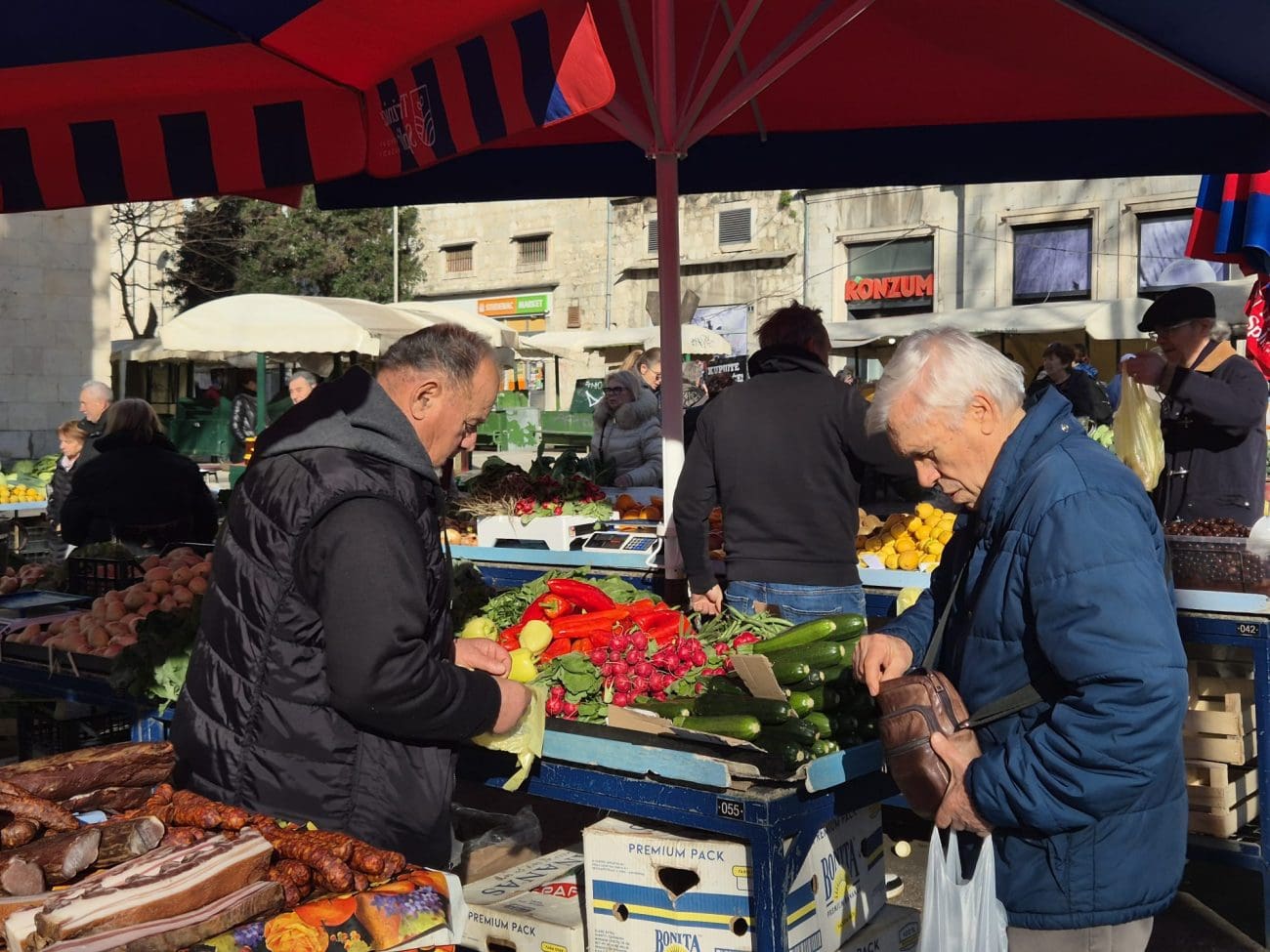 Vikend na splitskom Pazaru ima poseban šarm. Već od ranih jutarnjih sati prostor oko Dioklecijanove palače oživi žamorom kupaca, dozivanjem prodavača i bogatim mirisima svježeg voća i povrća.
