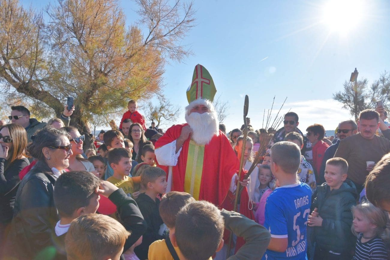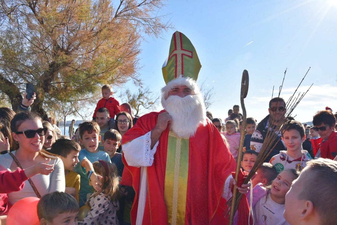 "Stigao je Sveti Nikola", ushićeno su izvikivala djeca ovog subotnjeg prijepodneva u Kaštel Sućurcu. Zaštitnik pomoraca i djece stigao je brodicom u Mašograd kako bi darivao djecu, slatkišima ali i simbolično, zlatnim šibama.