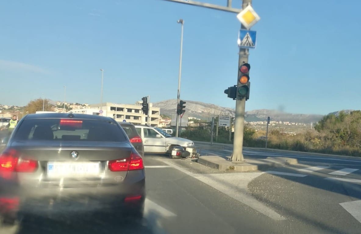 Splitska policija zaprimila je jutros u 8 sati dojavu da je došlo do sudara između osobnog vozila i motocikla na skretanju za Žrnovnicu.