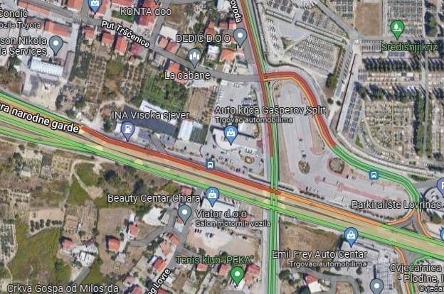 Na ovoj dionici ceste stvara se veća gužva jer su za promet blokirane dvije trake pa se prometuje jednom trakom, krajnjom lijevom.