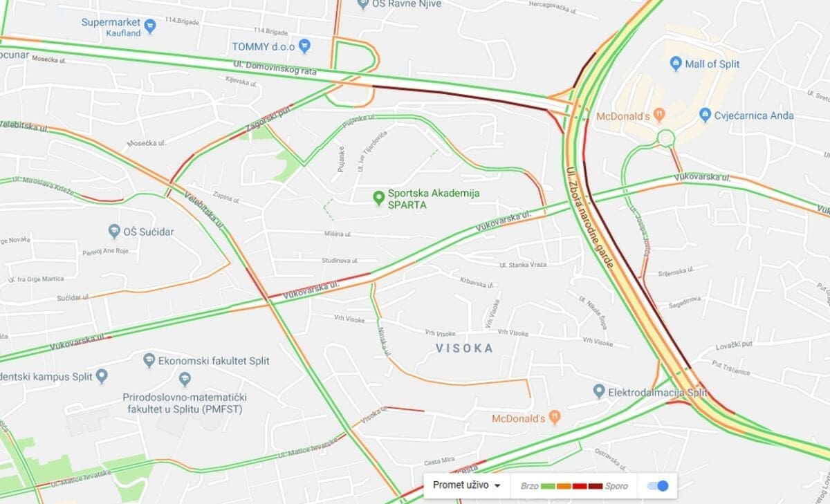 Oko 14 sati i 30 minuta dogodila se lakša prometna nesreća na križanju Ulice Domovinskog rata i Ulice Zbora narodne garde u Splitu. Sudarili su se autobus bjelovarskih tablica i jeep splitskih tablica.