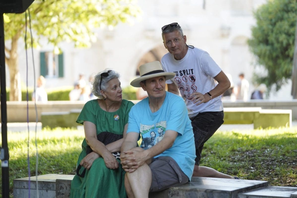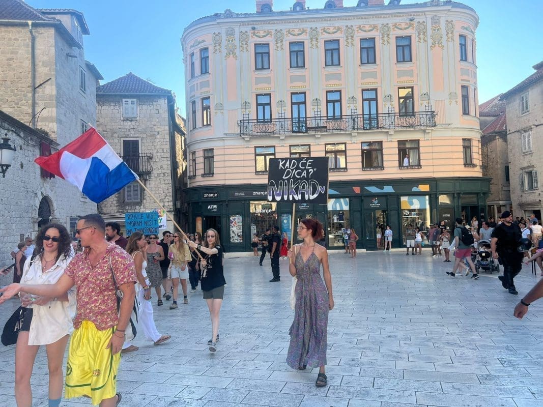 "Peristil je ukaljan onima koji se mole da upravljaju našim životima", poručili su aludirajući na 'klečavce' koji svake prve subote u mjesecu u Splitu održavaju mušku molitvu krunice.