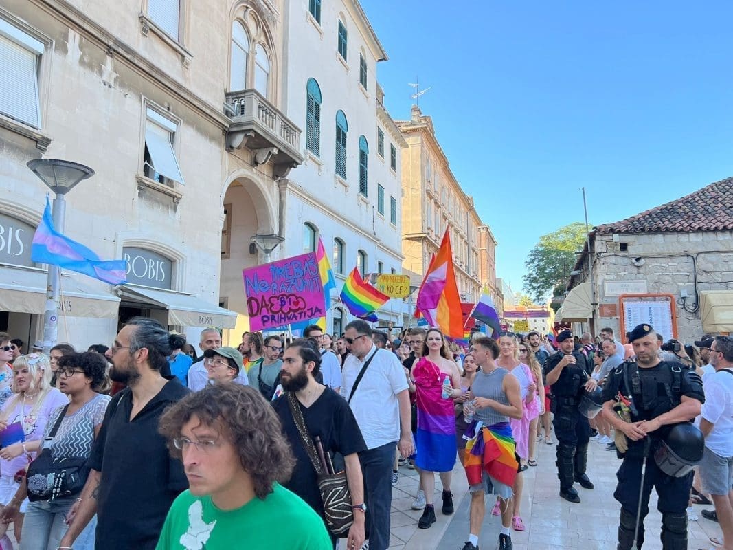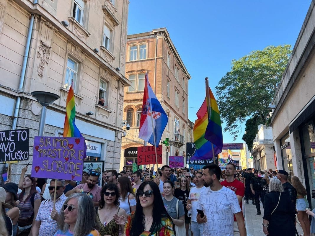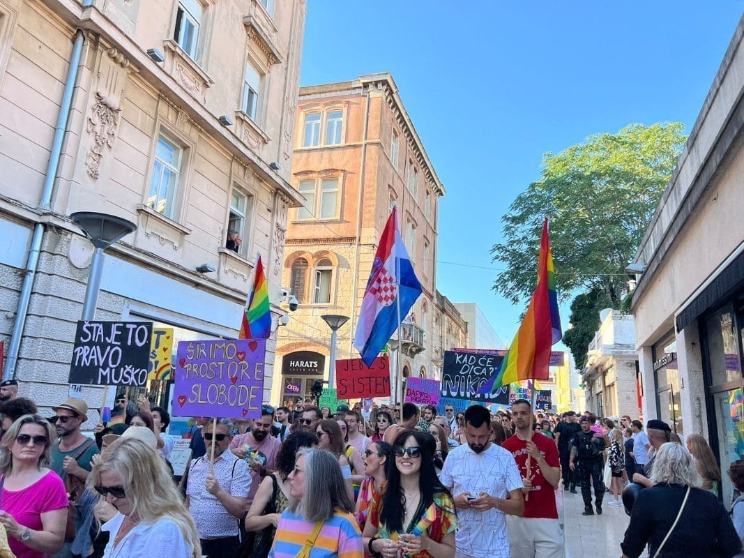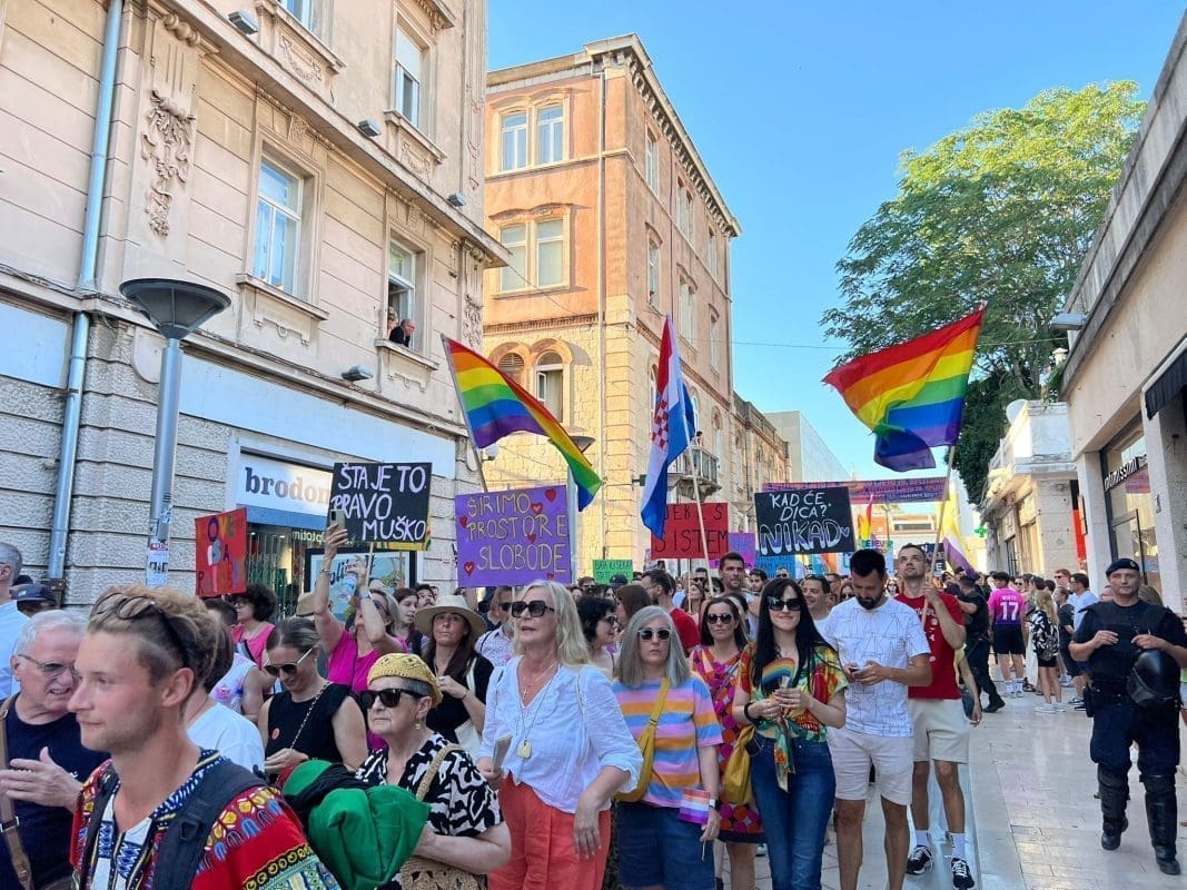 S transparentima u rukama na kojima je napisano "Dokle više moram nosit ovi transparent", " Došla sam direkt iz ormara", "Pazi koga mrziš, možda je to baš osoba koju voliš", "Plaćam isti porez, ali nemam ista prava",... 13. po redu splitska Povorke ponosa pod sloganom 'Širimo prostore slobode' krenula je kroz grad.