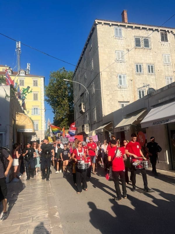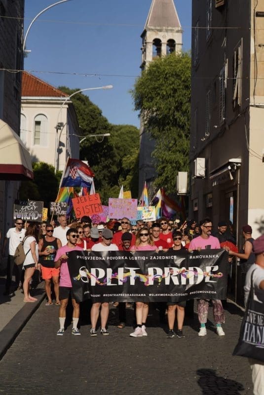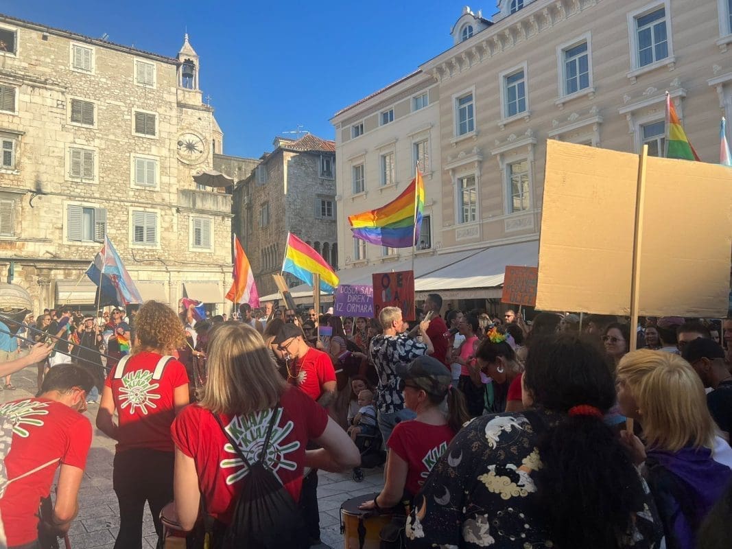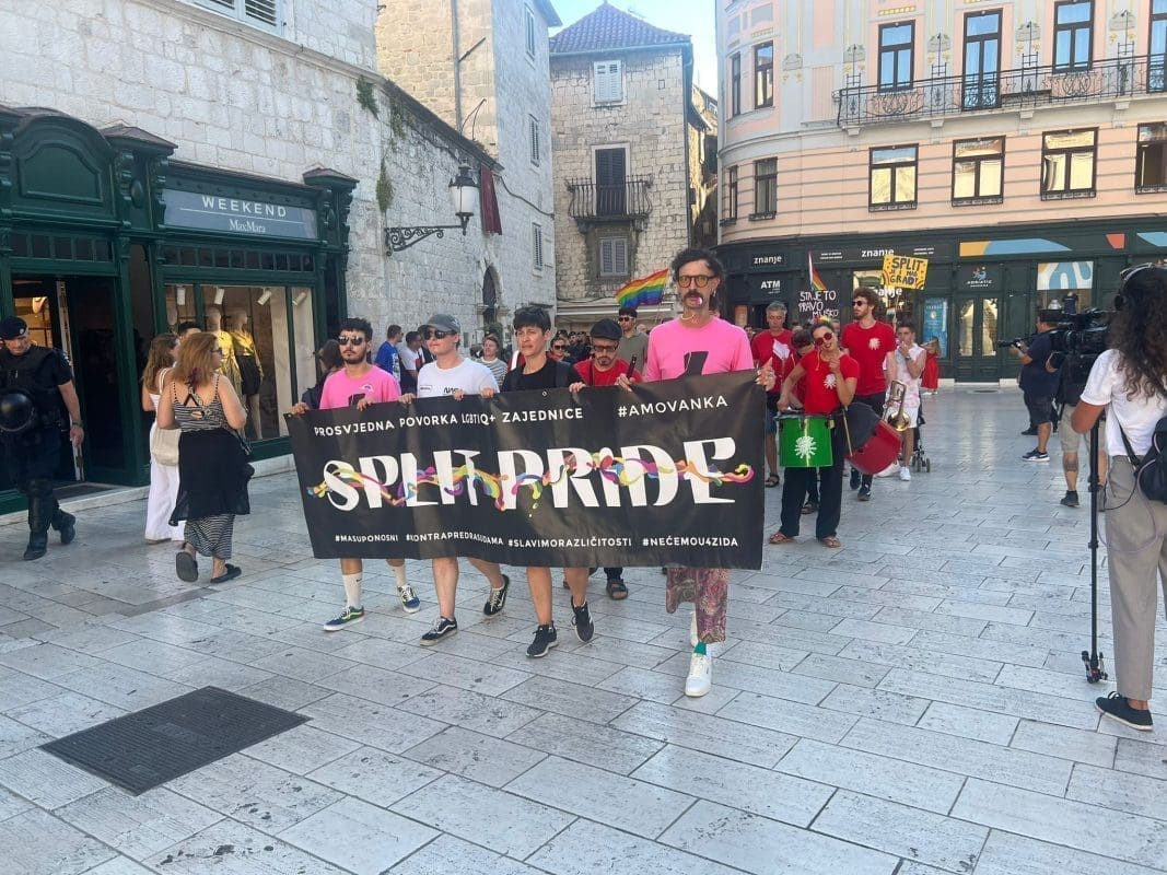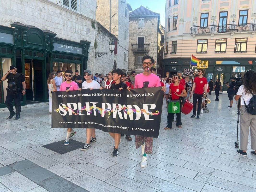 S transparentima u rukama na kojima je napisano "Dokle više moram nosit ovi transparent", " Došla sam direkt iz ormara", "Pazi koga mrziš, možda je to baš osoba koju voliš", "Plaćam isti porez, ali nemam ista prava",... 13. po redu splitska Povorke ponosa pod sloganom 'Širimo prostore slobode' krenula je kroz grad.
