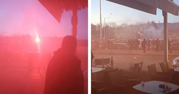 Na snimci koja kruži društvenim mrežama vidi se sukob Bad Blue Boysa i Armade. Skupina navijača iz jednog kafića u blizini stadiona baca baklje na drugu grupu navijača koja je stajala na parkingu preko puta ceste. Osim baklji, bacali su i boce, a u jednom je trenutku skupina na parkingu srušila zaštitnu ogradu. Na snimci se također može čuti urlanje i psovke.