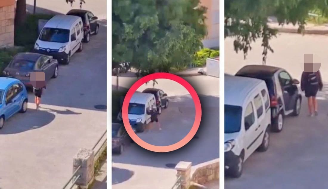 I zaista, na snimci koju nam je čitatelj poslao, vidi se žensku osobu kako udara po retrovizoru bijelog vozila koje je tu parkirano.