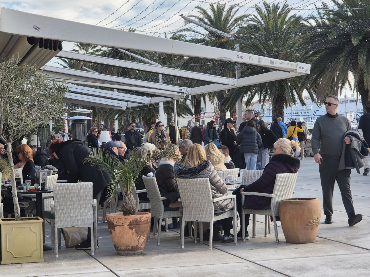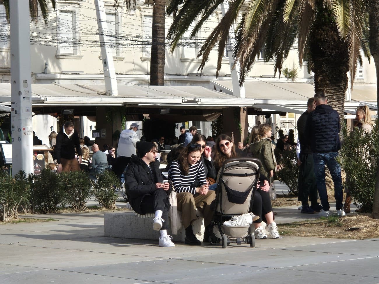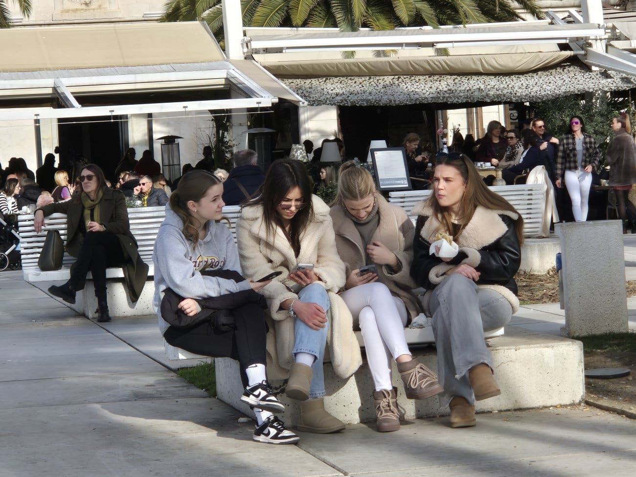 Mnogi su se odlučili popiti kavicu na Rivi, prošetati uz more ili sjesti na klupici gdje sija sunce i uživati u pogledu. Tako su štekati puni, svijeta ima od Đardina do Zapadne obale, čuje dječji smijeh, a traži se sjedalica više.