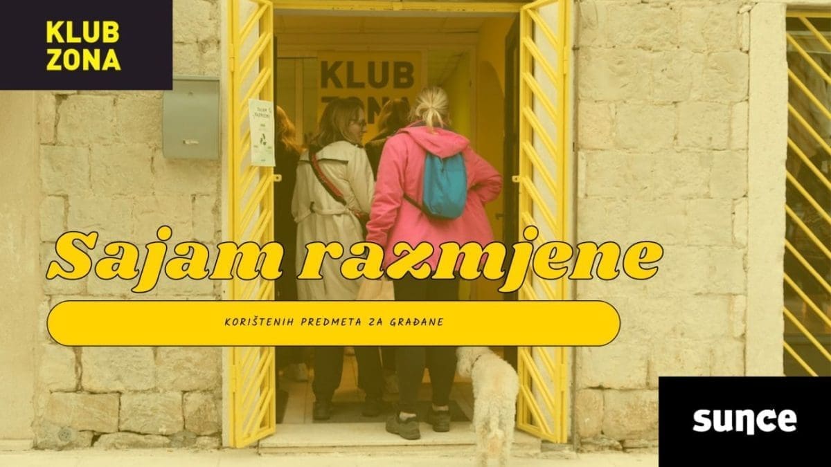 Udruga za prirodu, okoliš i održivi razvoj Sunce organizira još jedan Sajam razmjene u nizu. Prvi Sajam razmjene se otvorio u Trogiru u okviru Zimske avanture, potom u Splitu za Dan planeta Zemlje. Od tada se odvija u Klubu Zona.