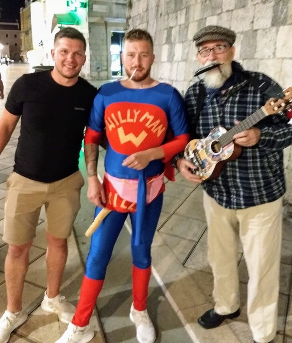 Vesela ekipa mladića sinoć je zabavljala slučajne prolaznike u Marmontovoj ulici. Superheroj "Willy Man" sa svojim prijateljima iz Njemačke nasmijavao je do suza Splićane i njihove goste lažnim spolovilom.