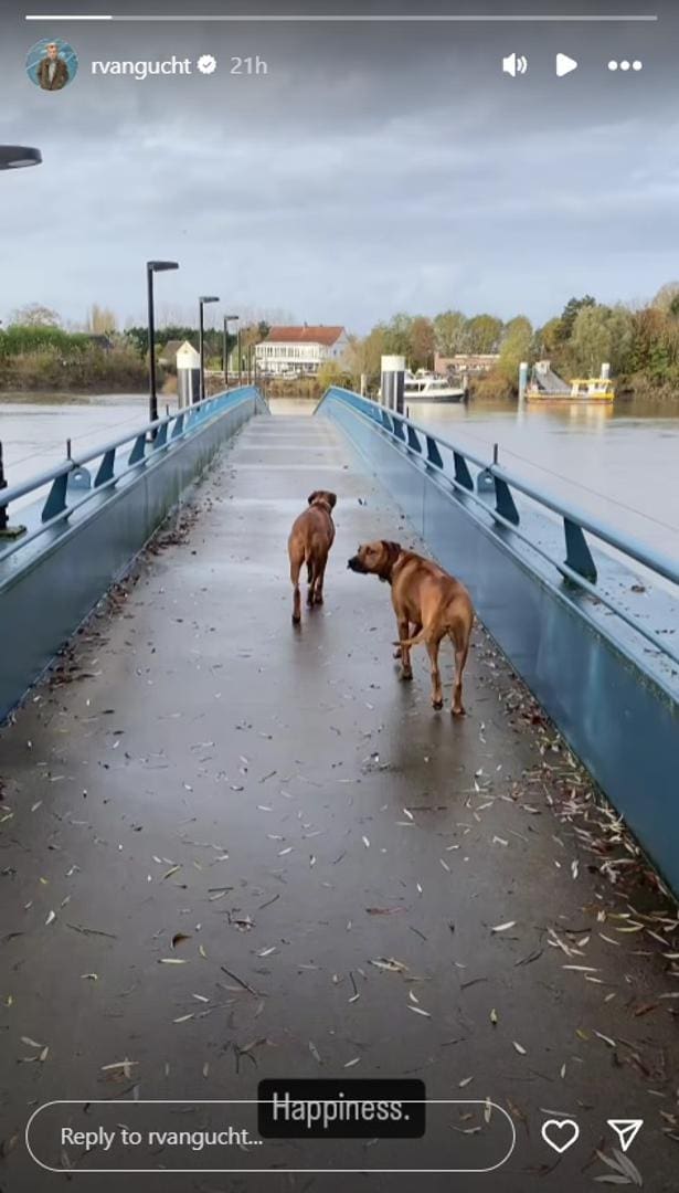 Na Instagram Storyju podijelio je kako provodi slobodno vrijeme šetajući svoja dva psa, uz jednostavan opis: "Sreća".