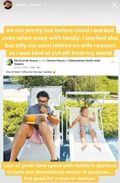 Charles Pearce, suprug Elle Dvornik, ovih je dana iznenadio Instagram pratitelje svojim posljednjim objavama. Naime, objavio je dvije priče, a u njima je pisalo kako se vraća poslu i svom rodnom gradu.