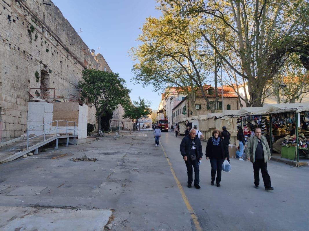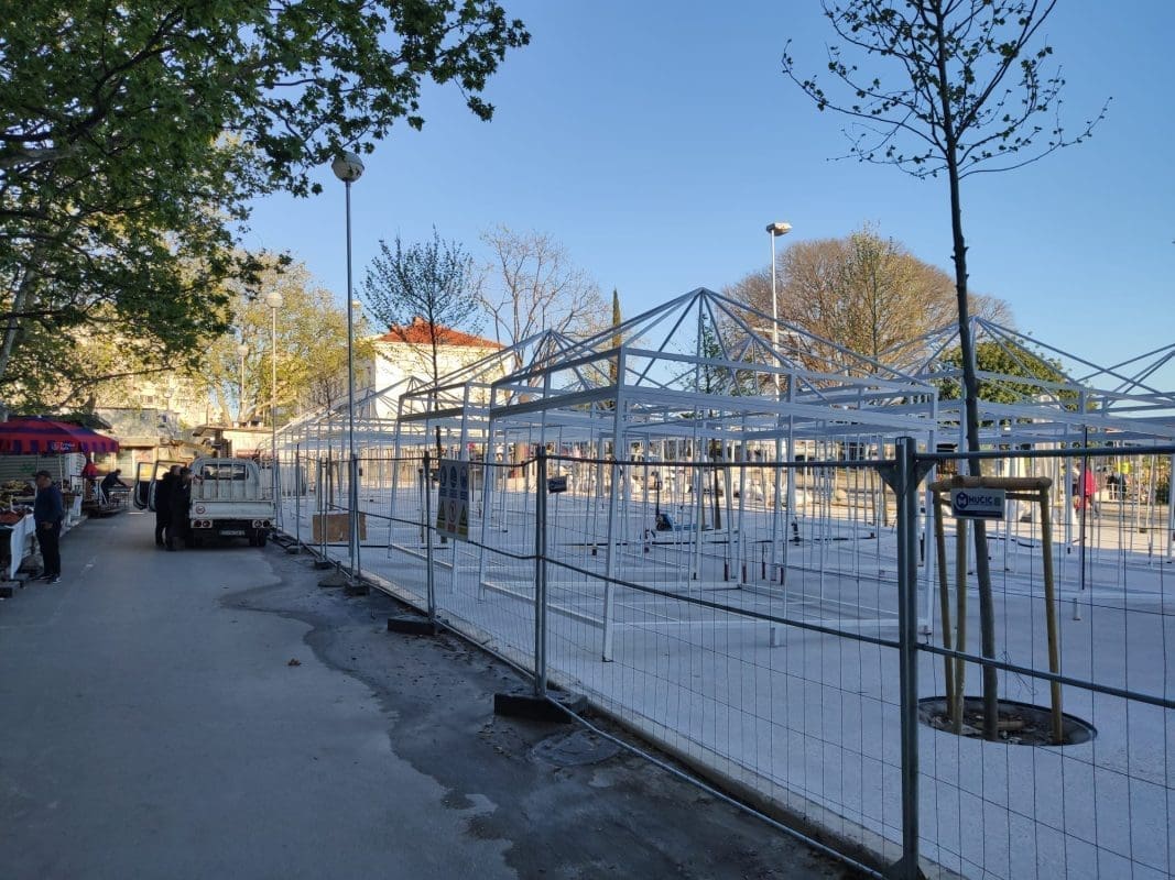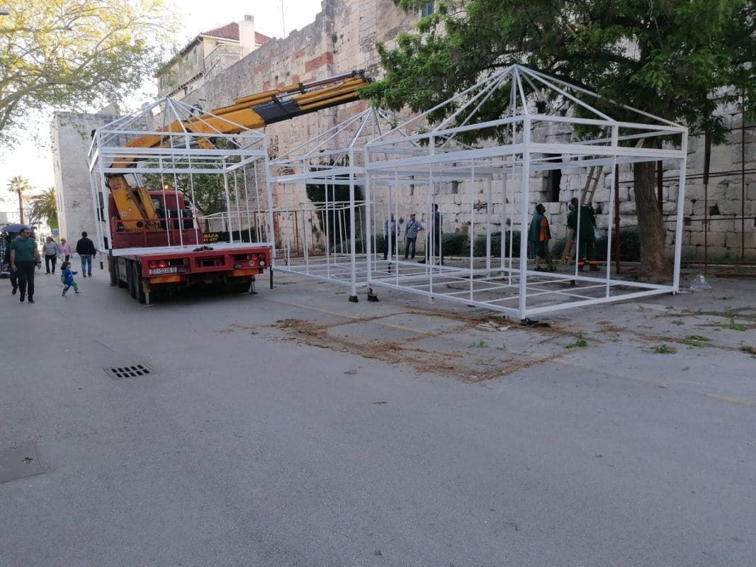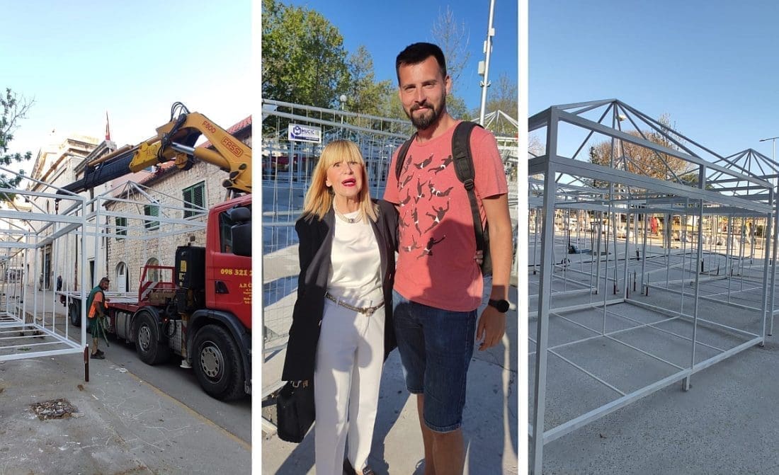 - Tako je, eventualno može isporuka određenih metala koji dan usporiti, ali cilja se na sv. Duju. Ti štandovi se sada montiraju na teren 5, na južni dio Pazara. Hrvojeva se konačno oslobađa u potpunosti te infrastrukture i sada se može vidjeti kako će ti izgledati. Ljudi su generalno zadovoljni. I građani, a i prodavači misle da će ovako biti bolje.