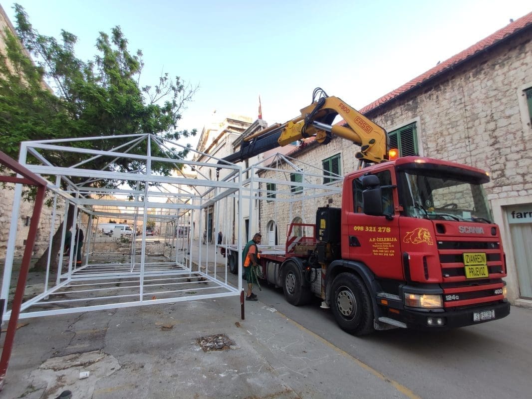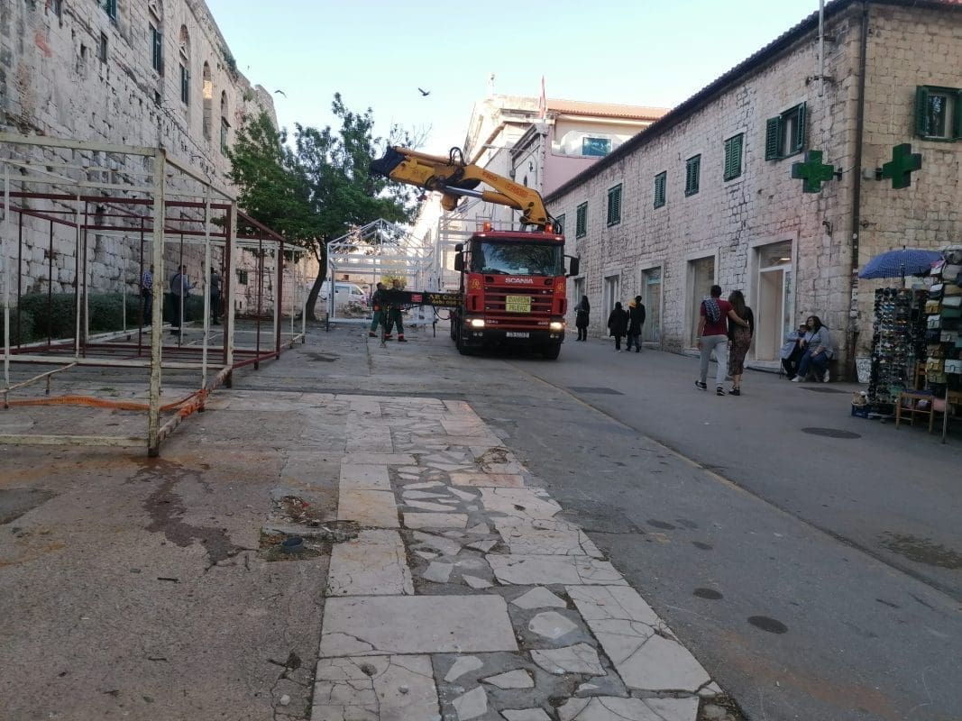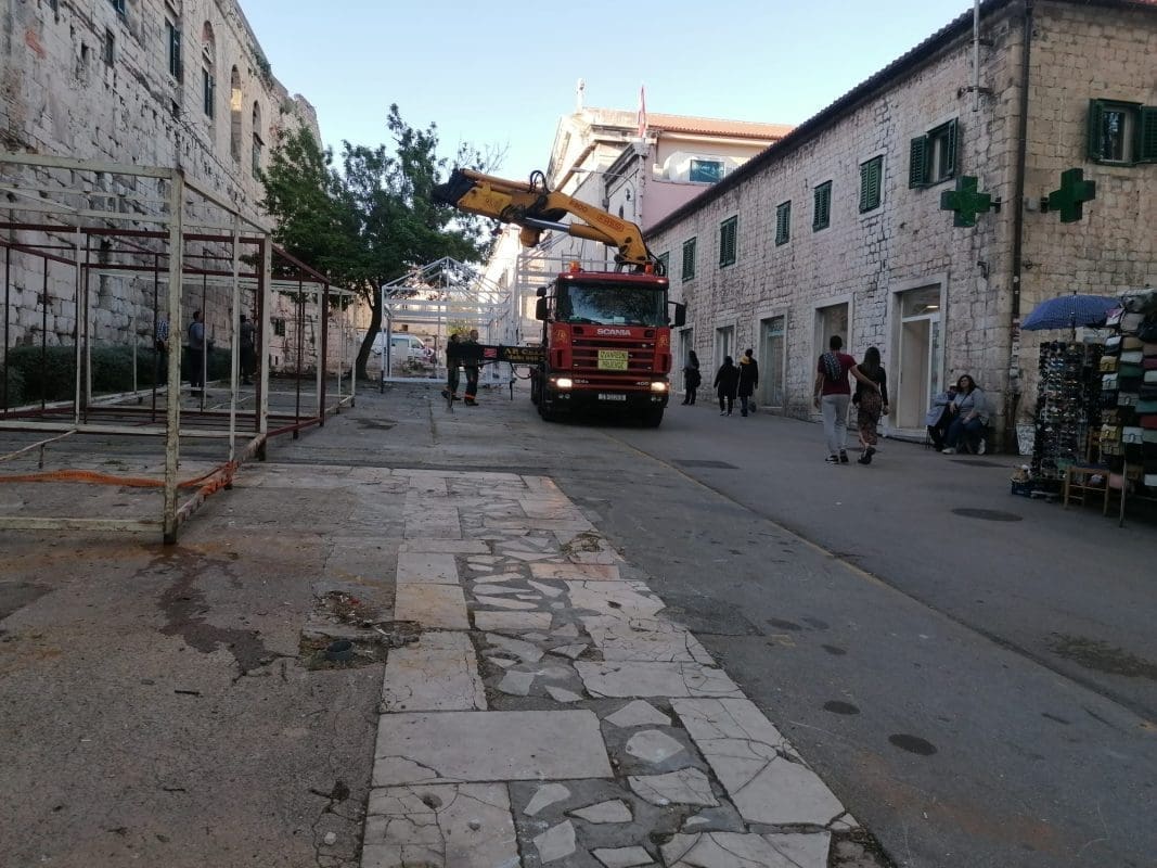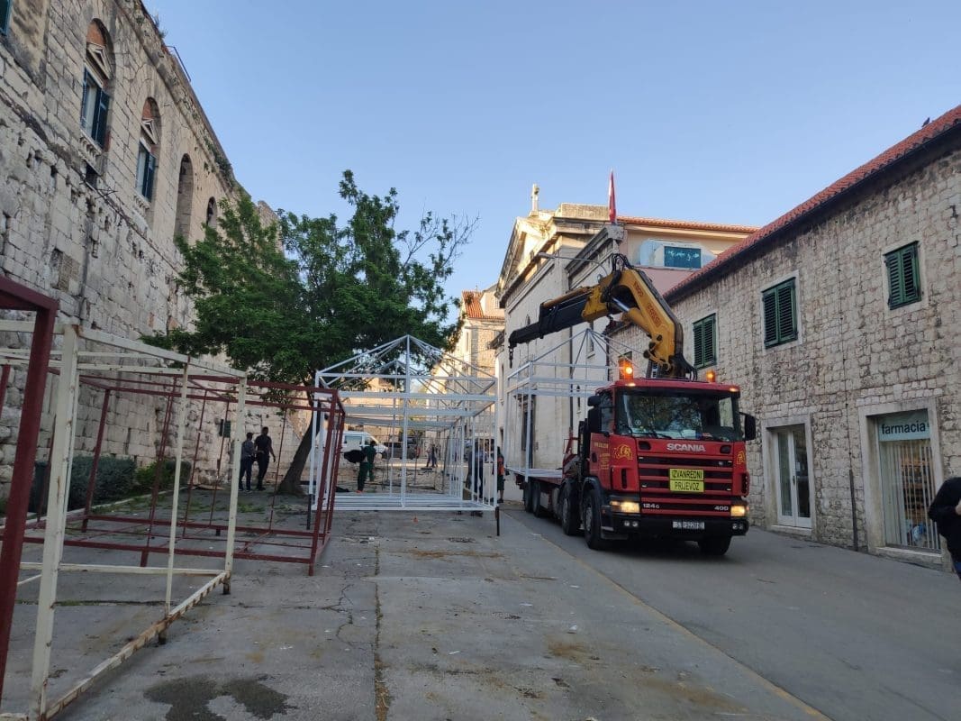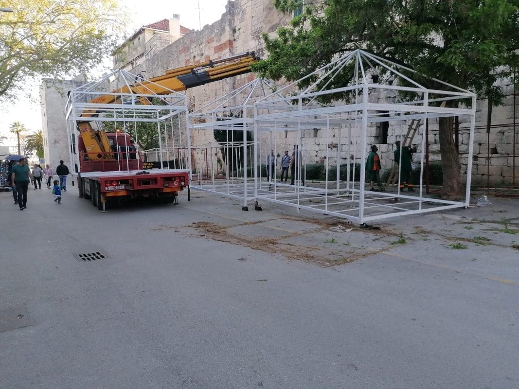 Nakon što se betonirao južni dio Pazara, sada se na teren 5, kako se zove taj dio, postavljaju metalne konstrukcije koje su privremeno bilo smještene uz istočni zid Dioklecijanove palače.
