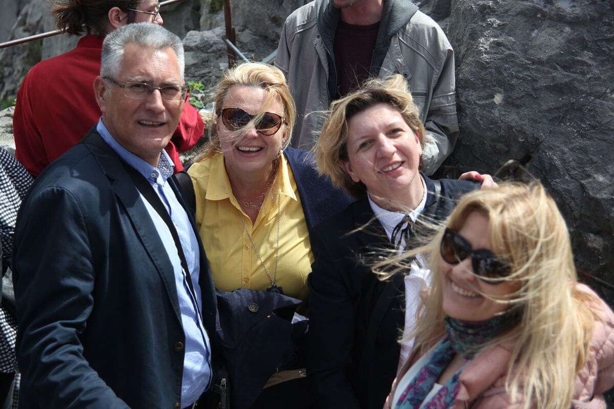 Nakon druženja u zgradi gradske uprave domaćini su poveli goste u obilazak svoga grada. Tako su među ostalim posjetili Gradski muzej Omiša, izložbu otvorenu u povodu 50 godina Festivala dalmatinskih klapa u Omišu te poznatu omišku utvrdu Peovicu, poznatu još i kao Mirabela.