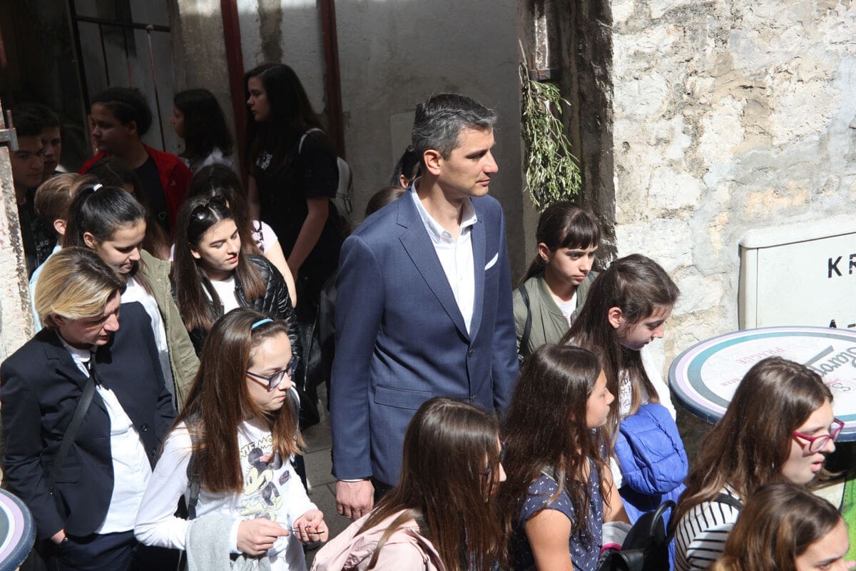 Članovi Dječjeg gradskog vijeća Solina predvođeni voditeljicom Radojkom Bućan, dogradonačelnikom Ivicom Rakušićem i ravnateljima solinskih osnovnih škola, posjetili su 13. travnja kolege, dječje vijećnike grada Omiša.