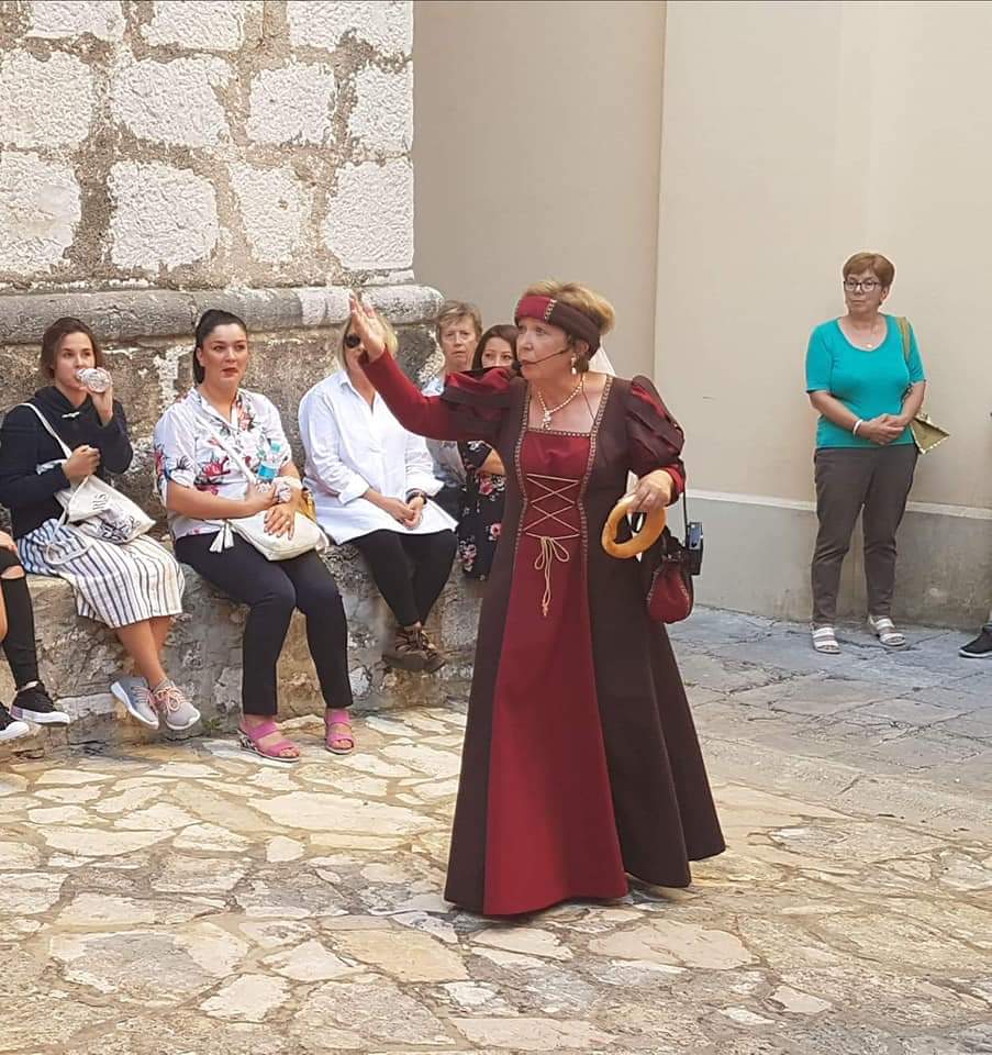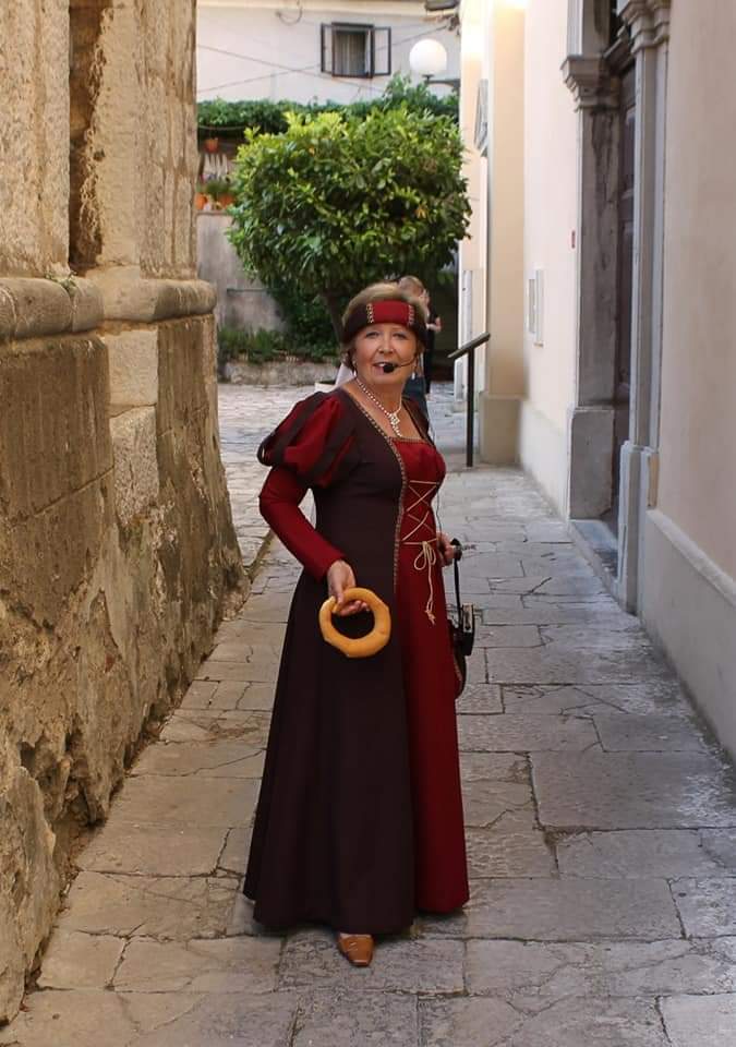 Unatoč tome što govori pet jezika ture vodi na slovenskom, talijanskom i hrvatskom jeziku. Prisjetila se zanimljivog događaja kada je kostimirana u caricu Mariju Tereziju vodila turu školske djece kojoj nije bilo jasno kako je živa, a zapravo je umrla. Djeca su je čitavo vrijeme skoncentrirano promatrala, a odgovarajući na njihovu nedoumicu kako je carica još uvijek živa objasnila im je da je s njima zahvaljujući vremenskom stroju. Na kraju ture joj je prišao jedan dječak i upitao ju je može li mu reći gdje se taj vremenski stroj kupuje jer bi volio da mu vrati baku koja je nedavno umrla.