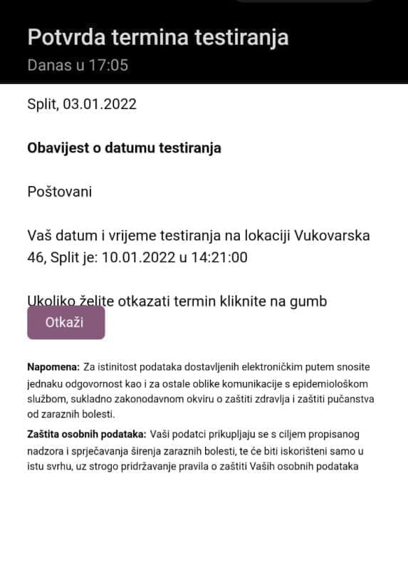 Na redakcijski mail javili su nam se Splićani koji su se danas online putem predbilježili za testiranje. Nevjerojatno zvuči podatak da netko tko se prijavio 3. siječnja na red za testiranje dolazi tek za tjedan dana, odnosno 10. siječnja. U tako dugom razdoblju, zdravstvena slika pojedinca podložna je velikim promjenama, odnosno netko tko je ovih dana pozitivan do spomenutog datuma itekako može biti negativan.