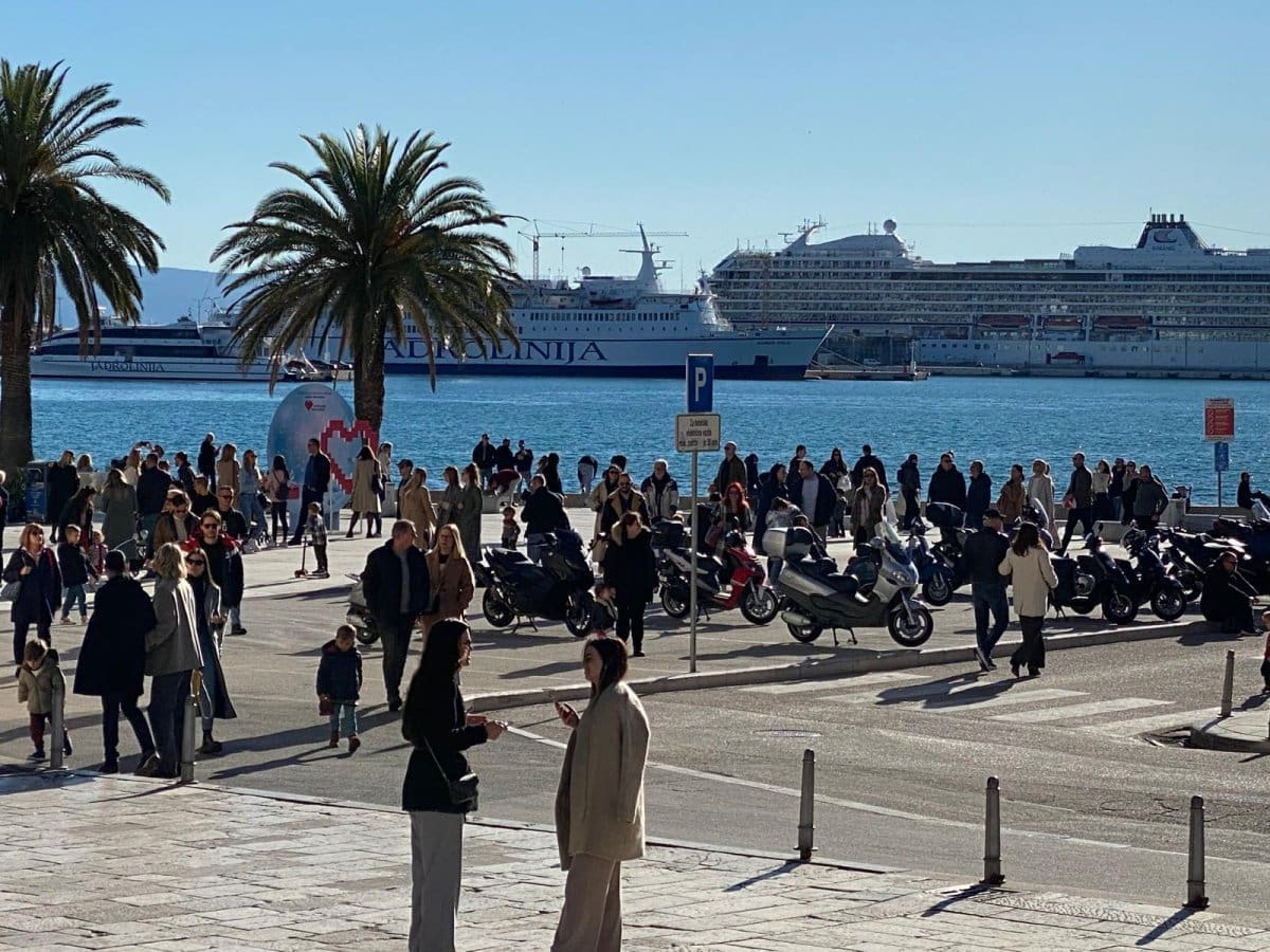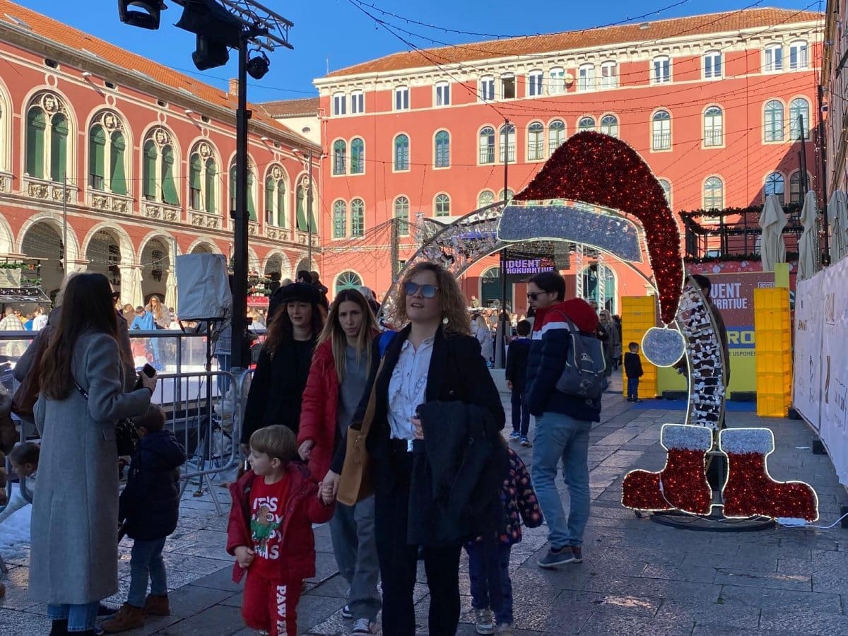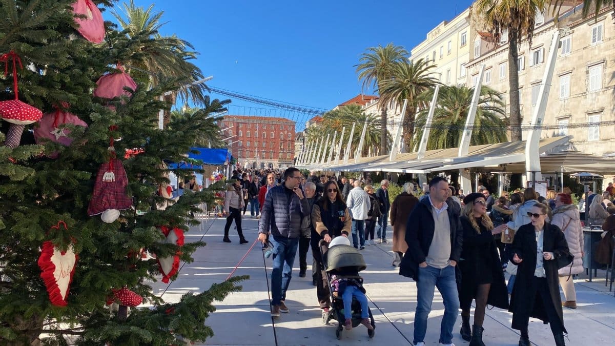 Mnogi Splićani i njegovi posjetitelji iskoristili su sunčano vrijeme za đir po najpoznatijoj splitskoj šetnici, a nisu zaobišli ni Prokurative na kojima vlada pravo božićno raspoloženje.