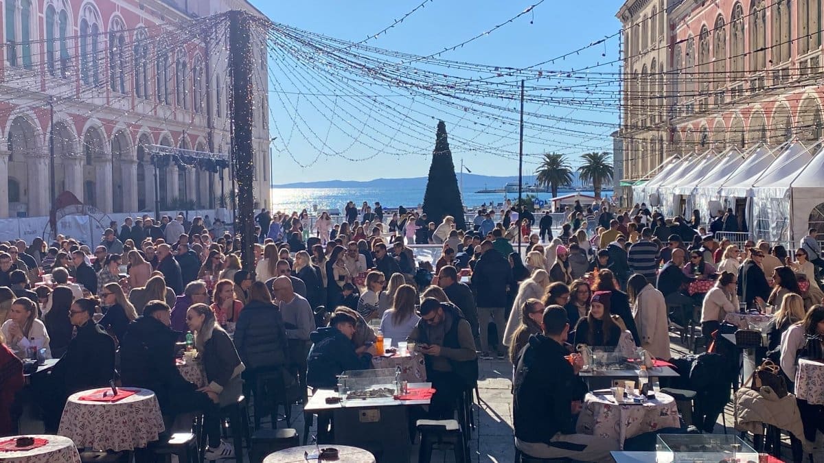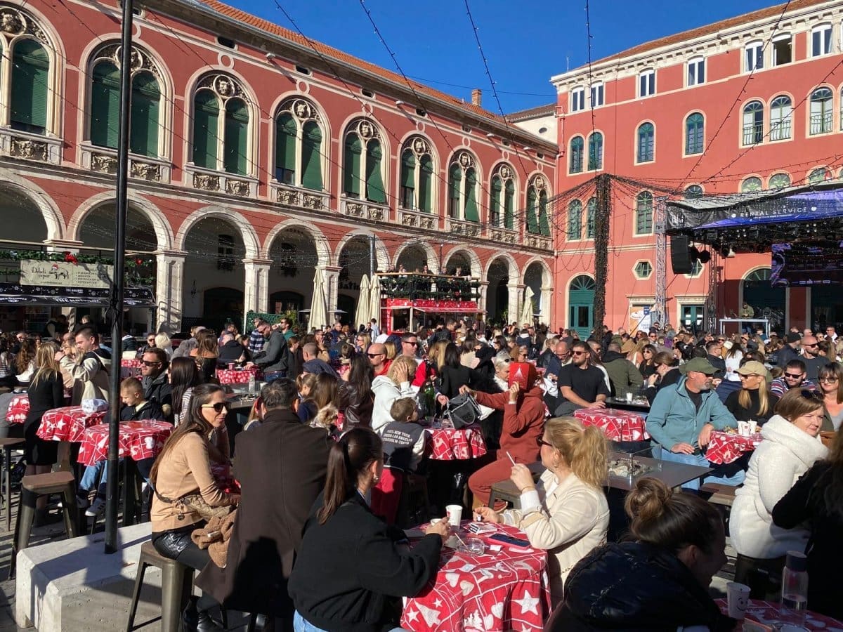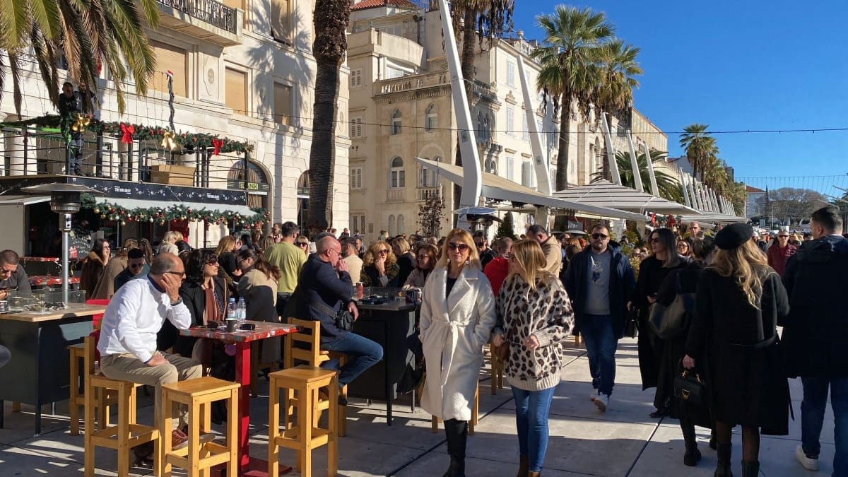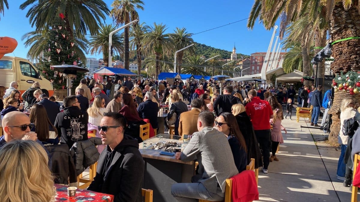 S obzirom na blagdansko vrijeme, Riva je ukrašena prigodnim dekoracijama, lampicama i svečanim detaljima koji naglašavaju toplinu predbožićnog razdoblja. Mnogi su jutros uživali u toplim napitcima i fritulama.