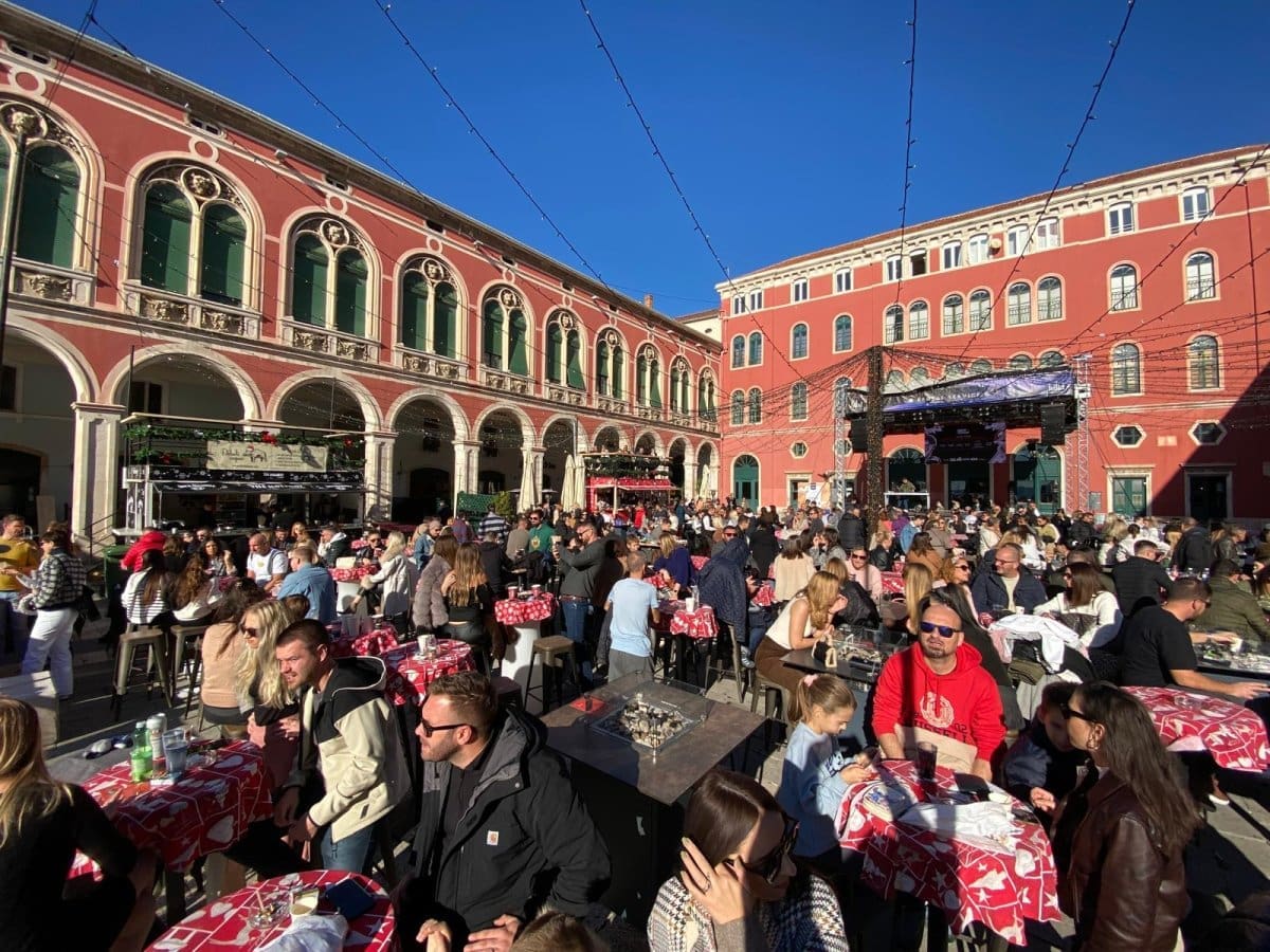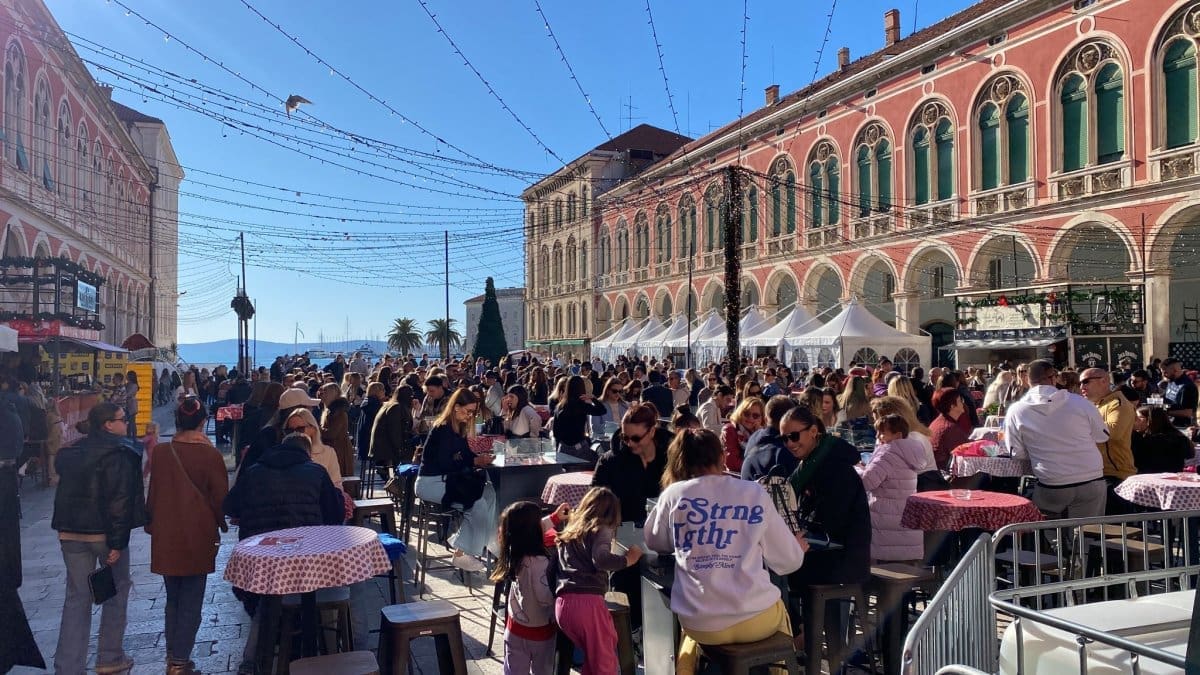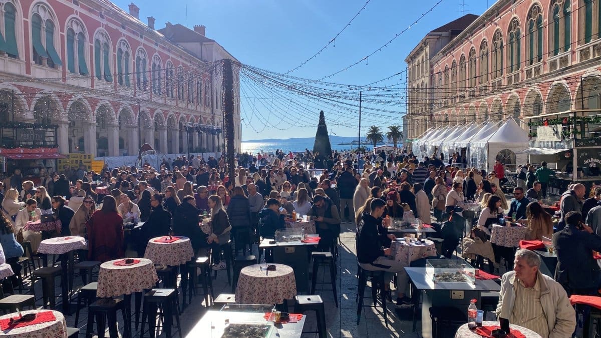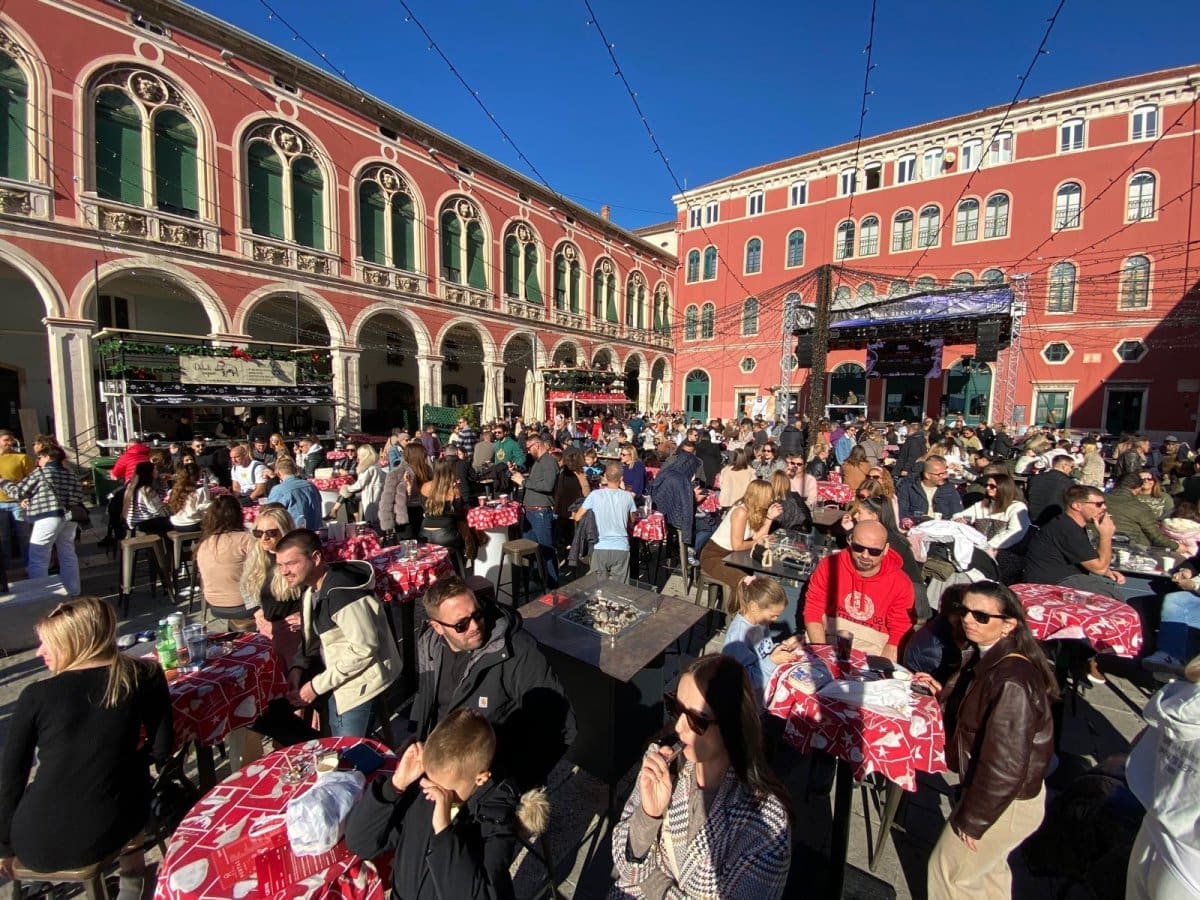 S obzirom na blagdansko vrijeme, Riva je ukrašena prigodnim dekoracijama, lampicama i svečanim detaljima koji naglašavaju toplinu predbožićnog razdoblja. Mnogi su jutros uživali u toplim napitcima i fritulama.
