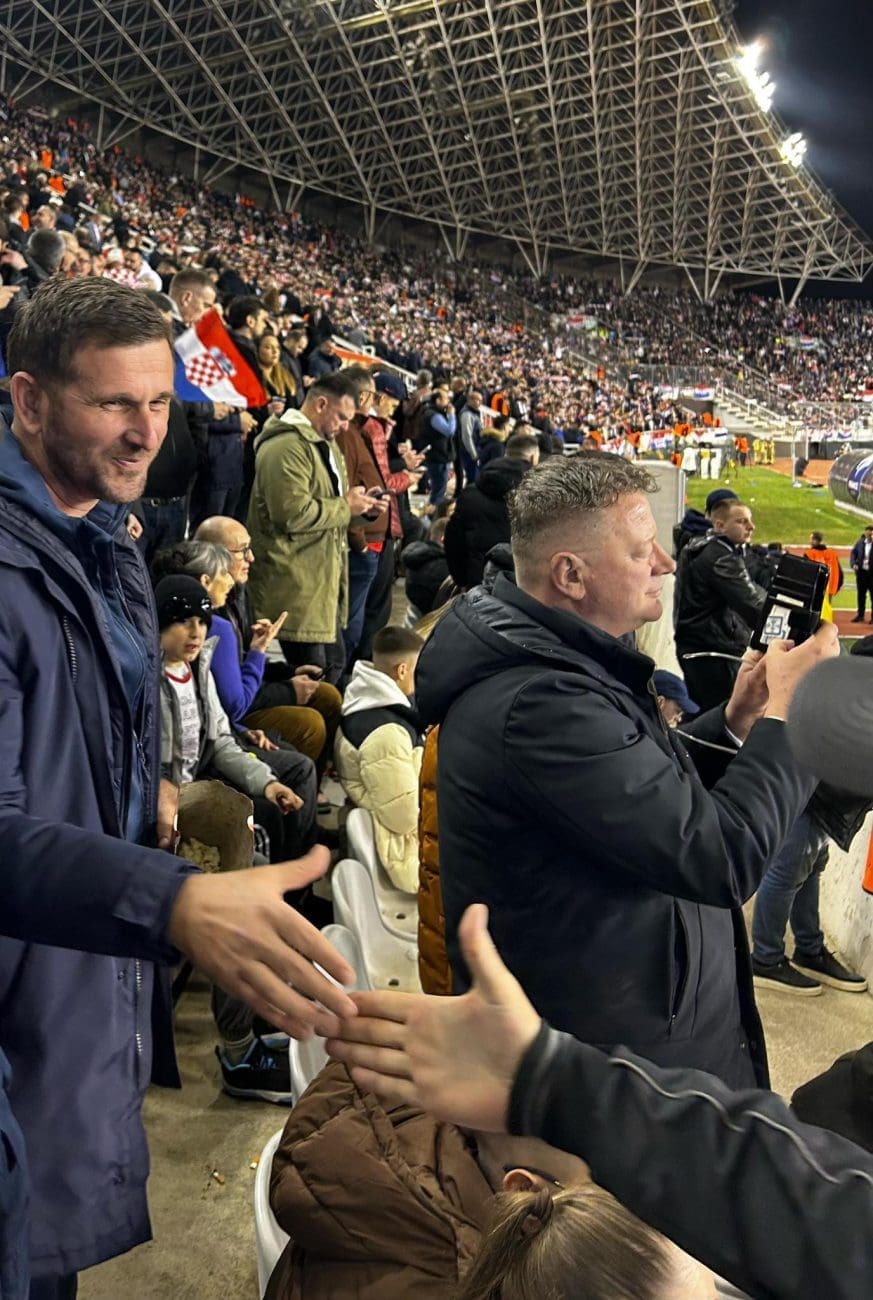 Šef splitskog HDZ-a i kandidat ove stranke za gradonačelnika Splita, Tomislav Šuta, obodri hrvatsku nogometnu reprezentaciju s poljudskih tribina u današnjem ogledu s Francuskom. Na utkakmicu je stigao u društvu prijatelja, prof. Tonća Modrića.