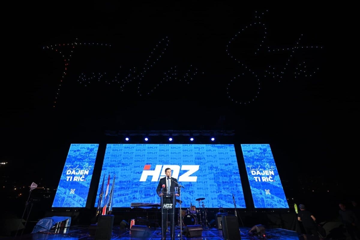 "Trebamo zadovoljno stanovništvo, sretne mlade i stare, to trebaš grade i to ću ti dati! Moj Splite, dajem ti rič", zaključio je Šuta, a grupa Dalmatino je zapjevala istoimeni hit dok su mu se na pozornici pridružili ostali članovi HDZ-a.