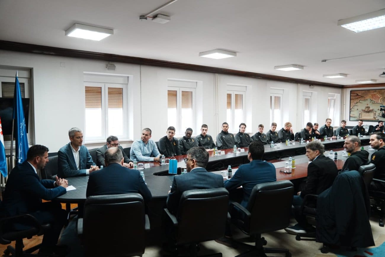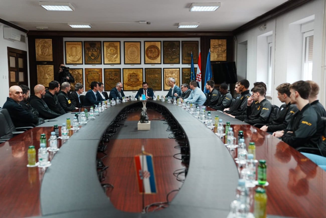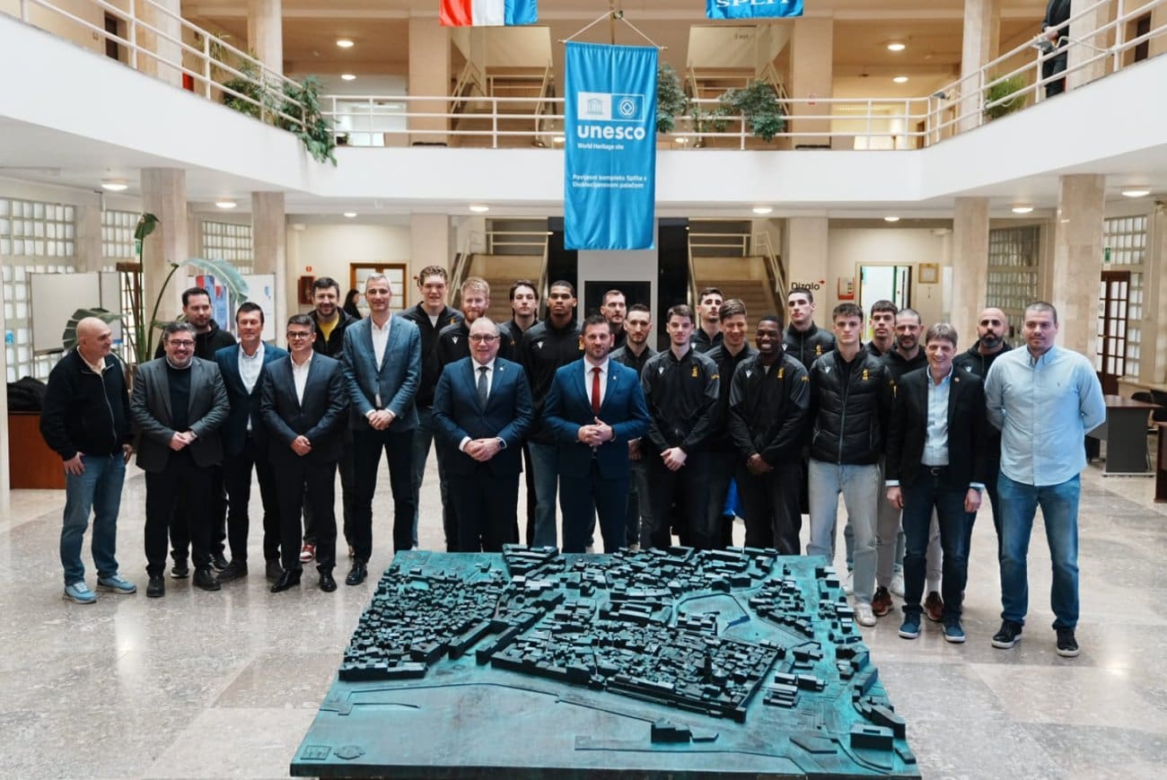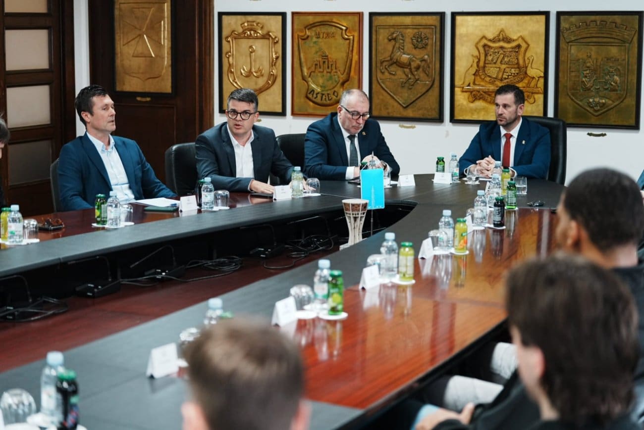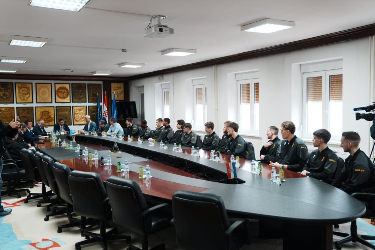 U Velikoj vijećnici Gradske uprave jutros je održan prijem za igrače, stručni stožer i predstavnike Košarkaškog kluba Split povodom osvajanja Kupa Krešimira Ćosića. Domaćin prijema bio je gradonačelnik Splita Tomislav Šuta, koji je klubu čestitao na trofeju i poručio da će Grad nastaviti ulagati u sportsku infrastrukturu.