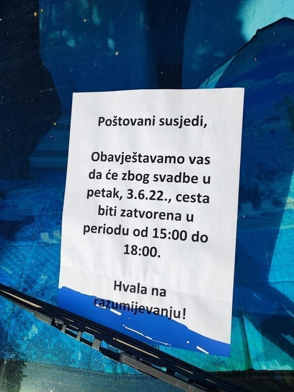 "Dio Kupreške ulice u petak 3. lipnja od 15h do 18h će biti privremeno zatvoren zbog svadbe", poručili su.