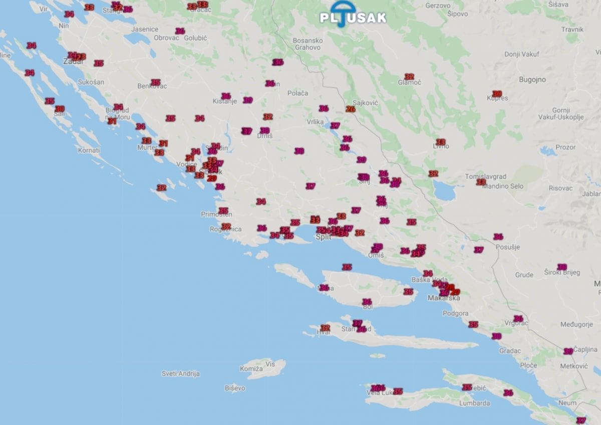Srijeda je bila najtopliji dan dosadašnjeg tijeka ljeta. Prema službenim podacima DHMZ-a, Dalmacija je bila najtopliji dio zemlje. U Makarskoj je u najtoplijem dijelu dana izmjereno 37°C, a u Kninu 38°C.