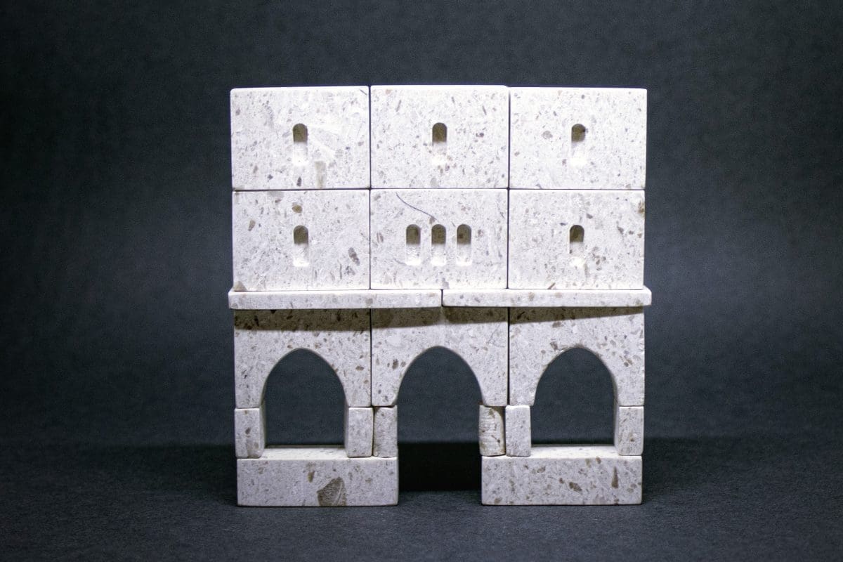 - Edukativna igra slaganja s kamenim kockicama za djecu i odrasle, od kojih se mogu složiti pročelje Stare gradske vijećnice, pročelje Jugoistočne kule i Dioklecijanova palača.Osim osnovnog cilja ovog suvenira da se korisnik bolje upozna sa poznatim građevinama grada Splita, igra razvija finu motoriku i koordinaciju oka i ruke jer je riječ o sitnim elementima koje je teško spojiti.
