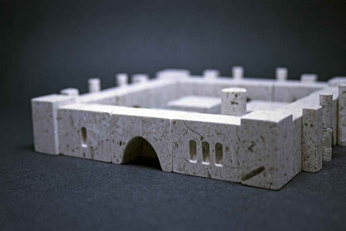 Kamena kocka predstavlja Dioklecijanovu palaču, jer je upravo od tog materijala i sagrađena palača, te posjetitelj Muzeja na taj način kao da jedan dio palače nosi sa sobom. Napravljeno je nekoliko kamenih kocaka istih dimenzija, a sve kocke postavljene zajedno čine kameni zid kao zid Dioklecijanove palače.