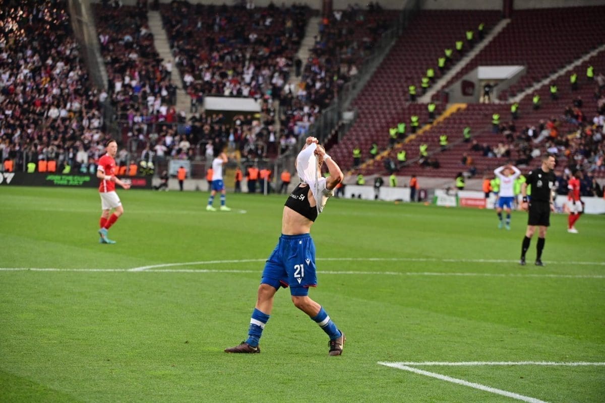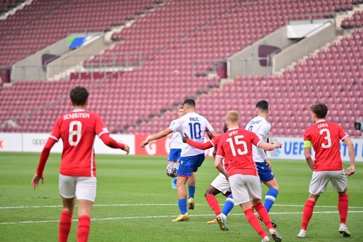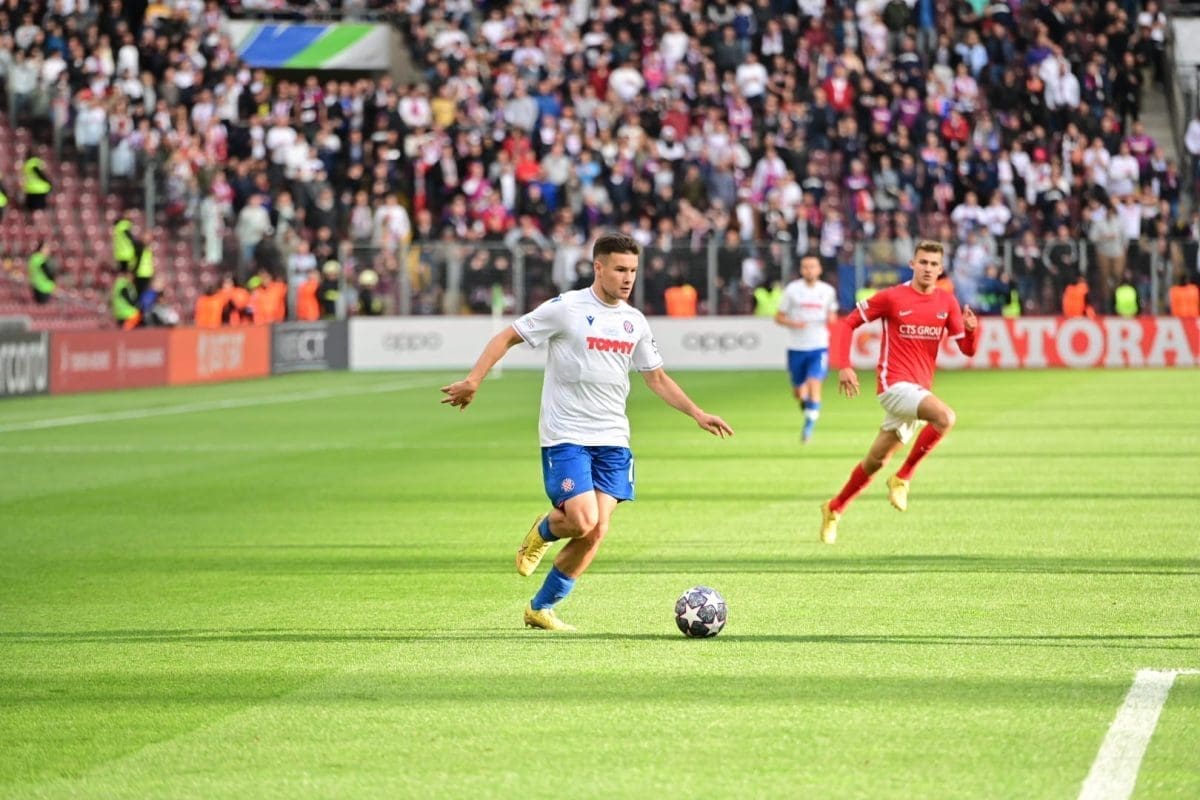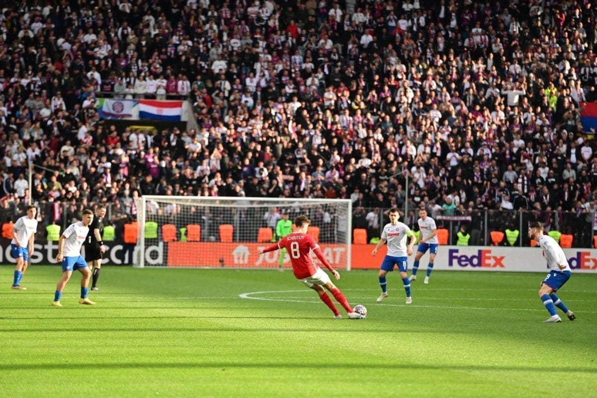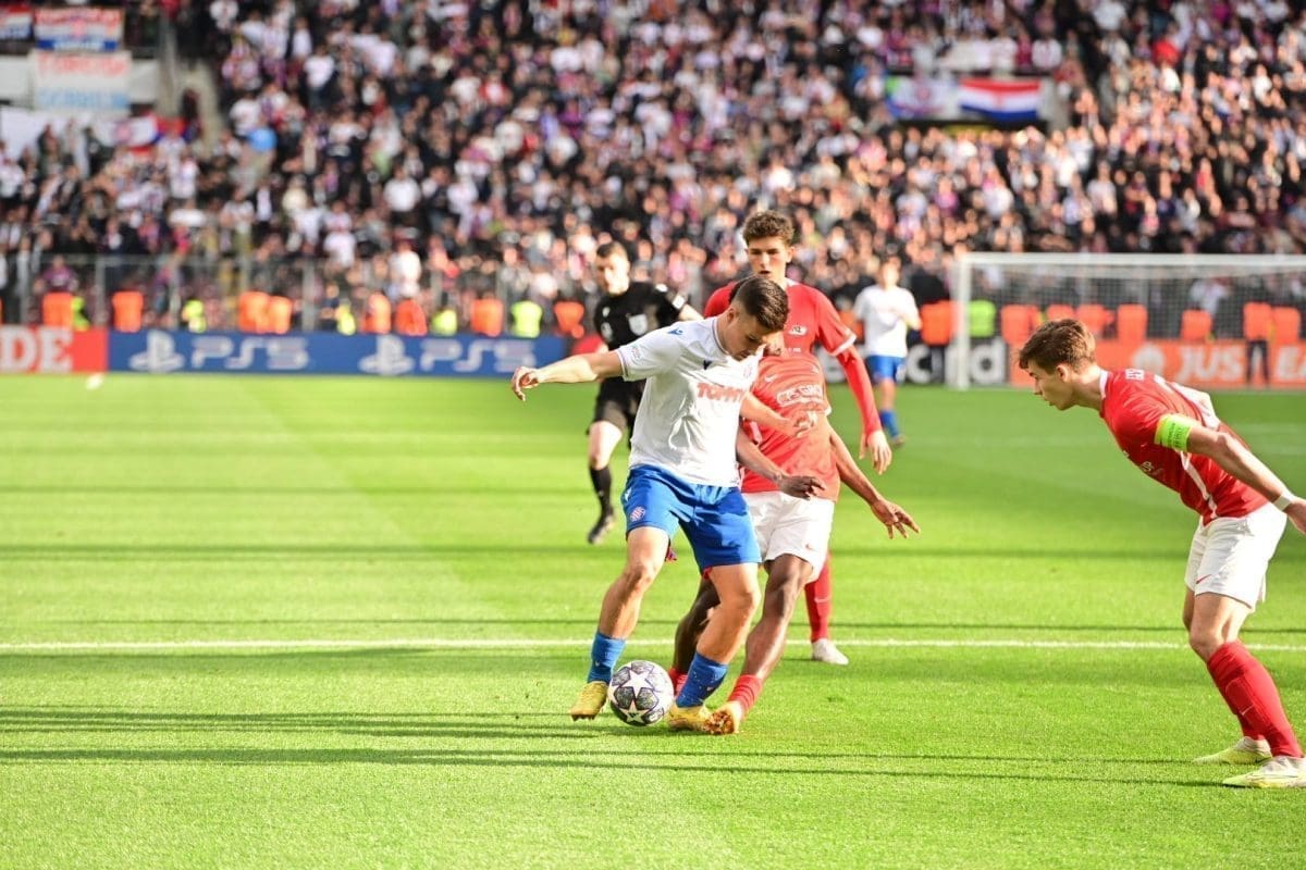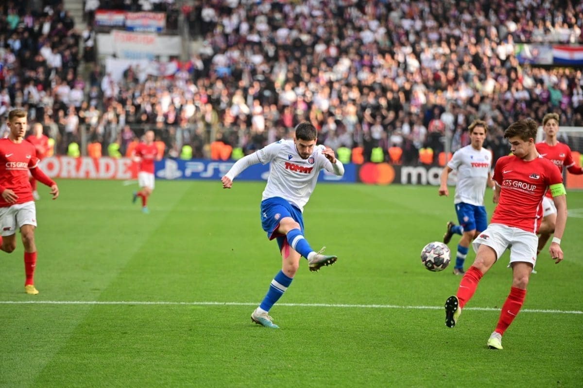 55' - Dobra prilika za Hajduk! Đolonga je proigrao Vrcića na desnoj strani, ovaj vratio loptu u sredinu na Pukštasa, koji ju nije dobro zahvatio loptu. To je do sada bila najbolja prilika Hajduka.