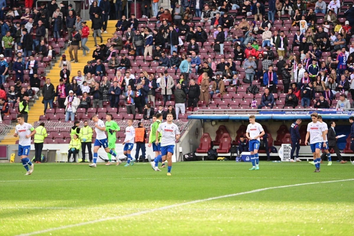 Pune se tribine i navijači Hajduka su jako glasni. Podrška za juniore je ogromna.