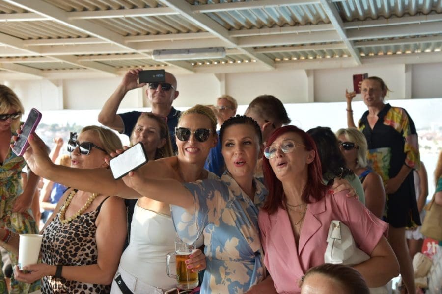 Na trajektu koji je u jučer isplovio iz Splita za Vela Luku okupili su se mnogobrojni prijatelji, gosti i obitelj pjevača Olivera Dragojevića. Putnici mogu uživati u koncertu grupe Oliverovi Dupini, koju čine njegov nećak Petar Dragojević te nekoliko mladih pjevača pod vodstvom Ante Gele.