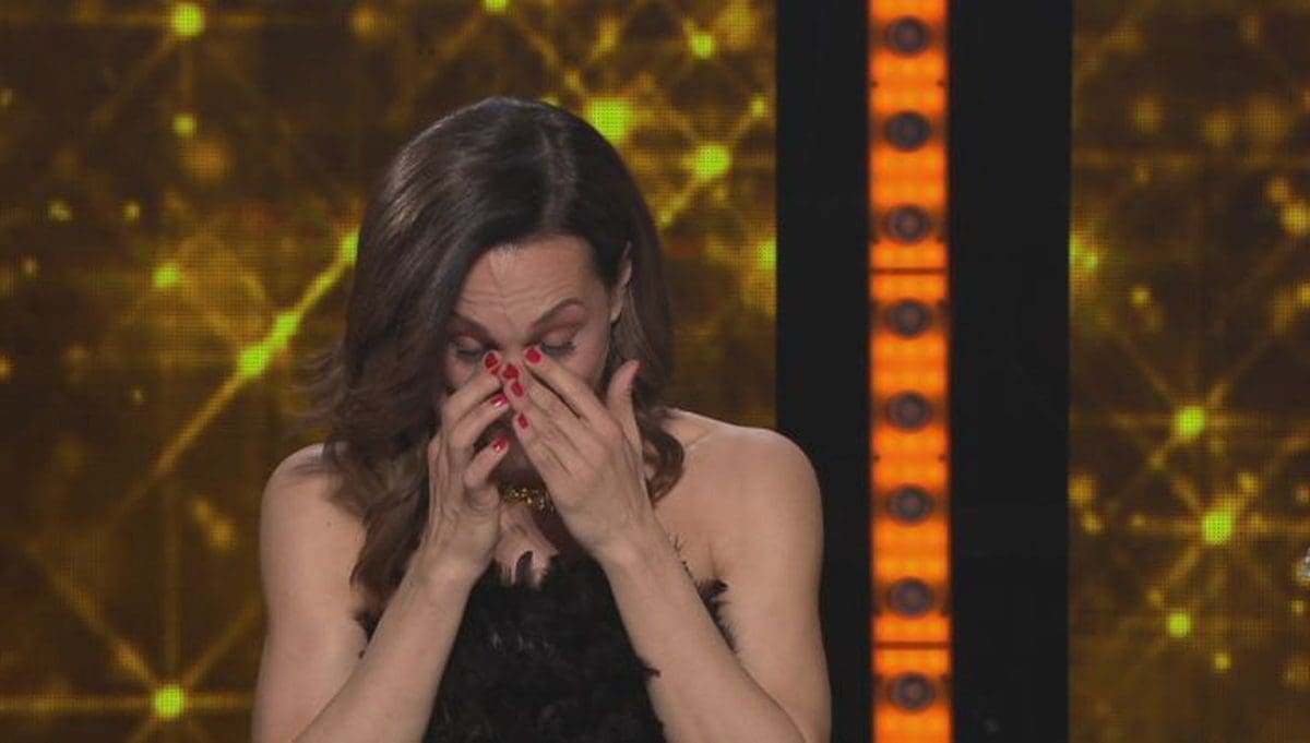 Članica žirija showa "Ples sa zvijezdama", Larisa Lipovac Navojec, nije mogla suzdržati emocije dok su na plesnom podiju uz pjesmu "Iris" benda Goo Goo Dolls bečki valcer izveli glumac Filip Vidović i Paula Jeričević.