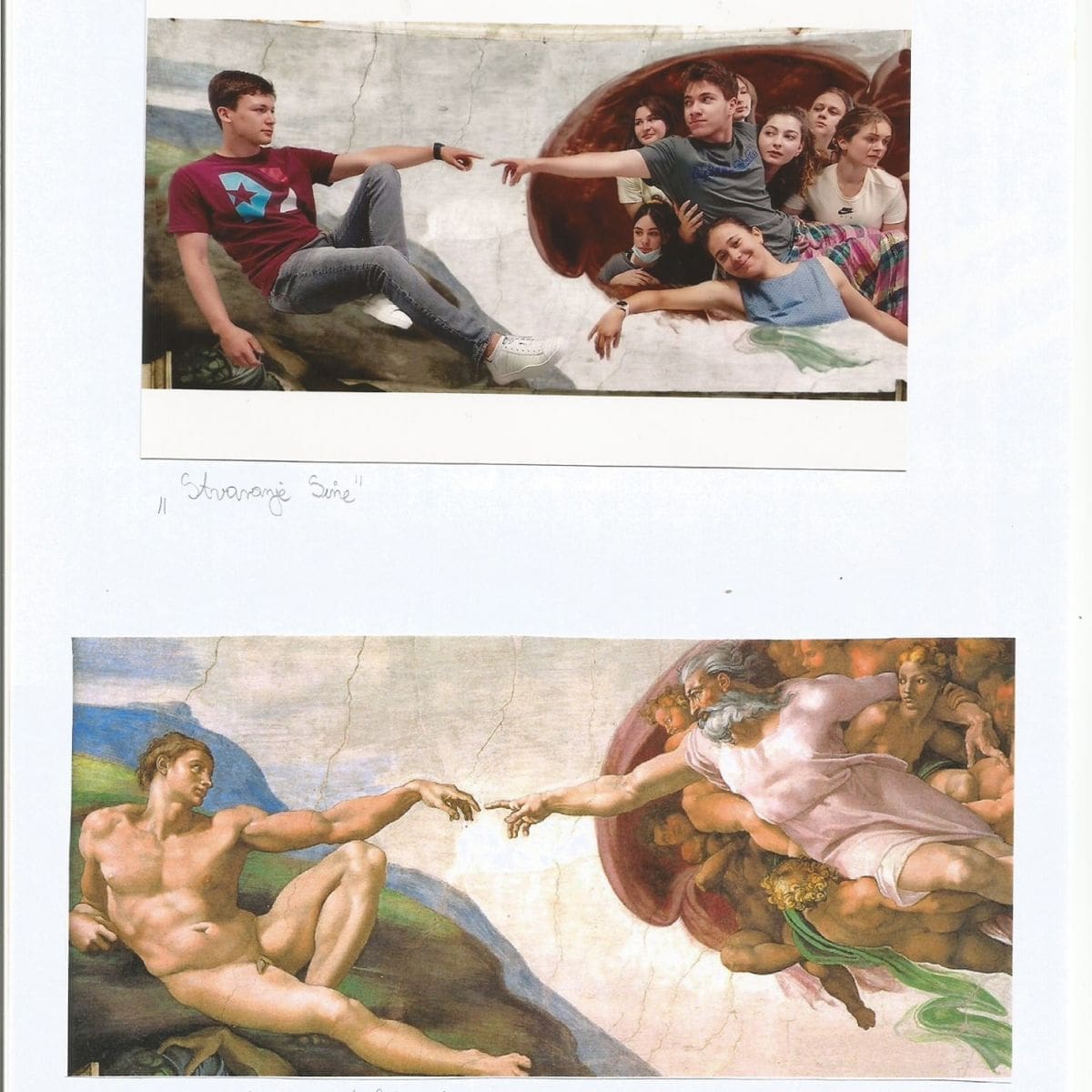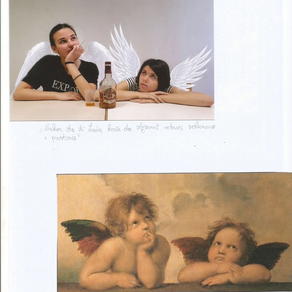 "Nakon što ti Lada kaže da objasniš odnos volumena i prostora", opis je fotografije na kojoj učenice poziraju približno kao i anđeli na fotografiji poznatih 'Raffaellovih anđela'.