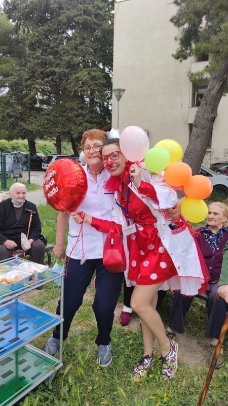 Uz srdačnu dobrodošlicu drage Anice Svaline, socijalne radnice, splitski klaunovidoktori dr. Cmok (Ivana Giove Župa) i dr. Nađimir (Darko Pejković) su zabavili korisnike i osoblje Doma.