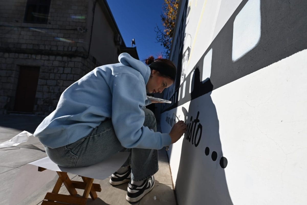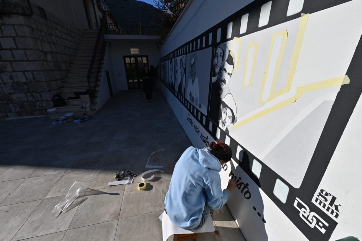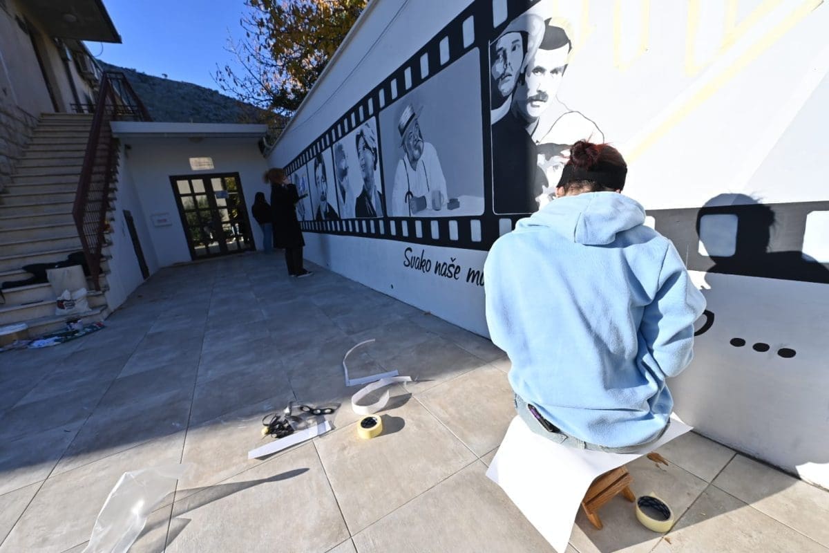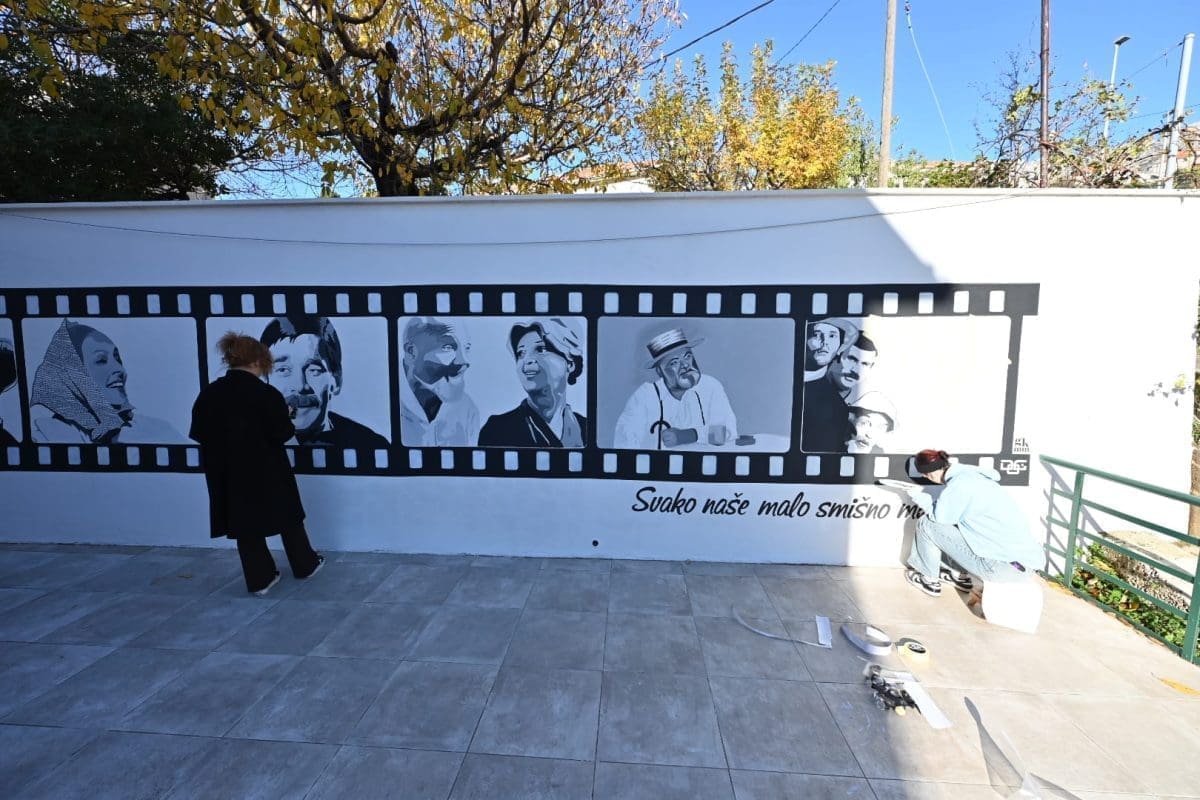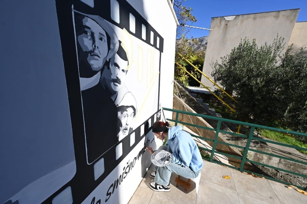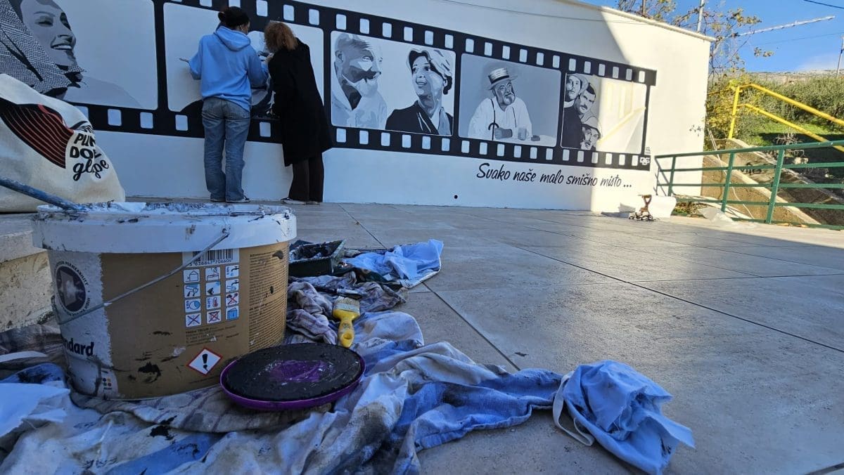 Ispred Odjela Gradske knjižnice Marka Marulića u Žrnovnici, marljive ruke srednjoškolaca zaprljane su bojom, a sve s jednim ciljem - dovršiti mural kojim dominiraju motivi glumaca i likova Veloga mista, najpoznatijega Smojinog djela.