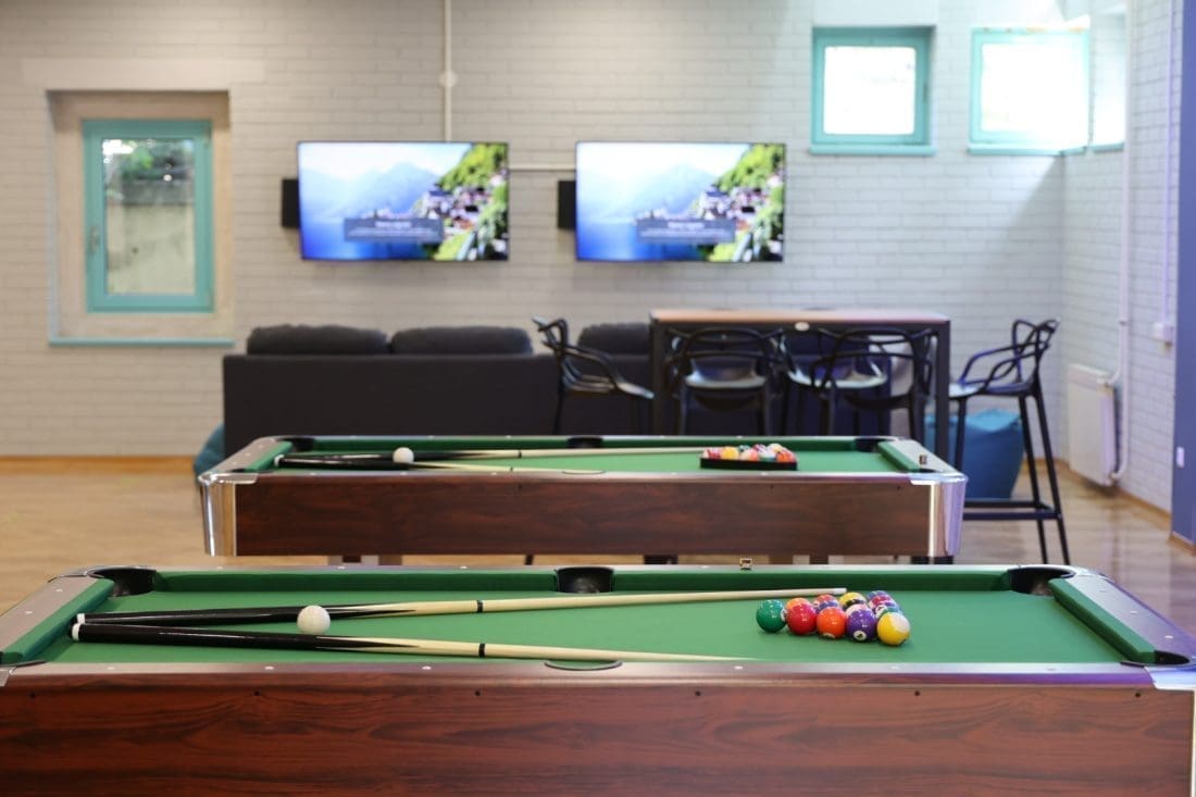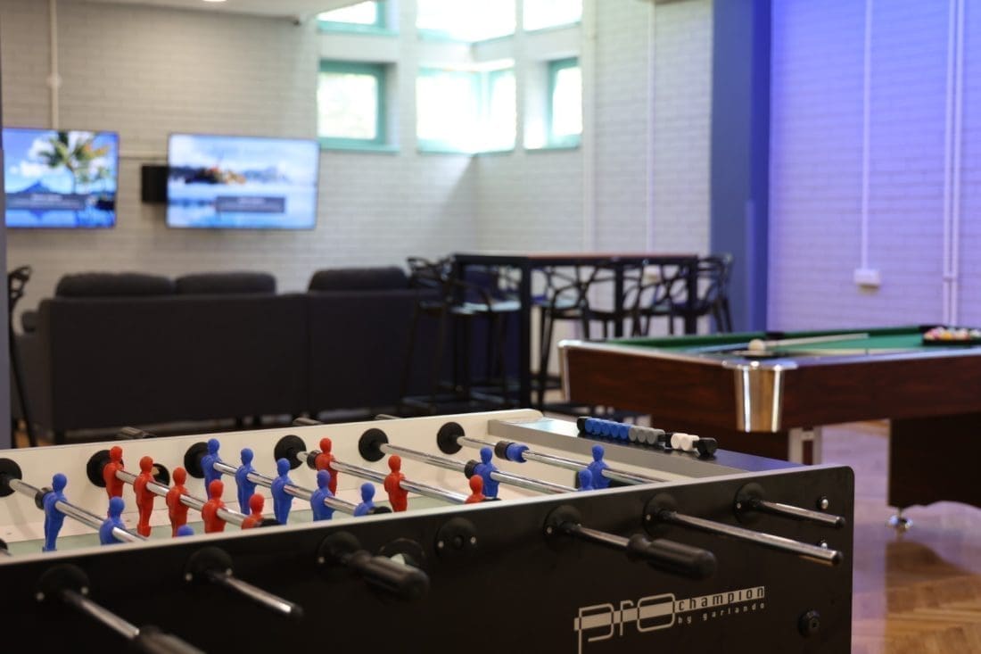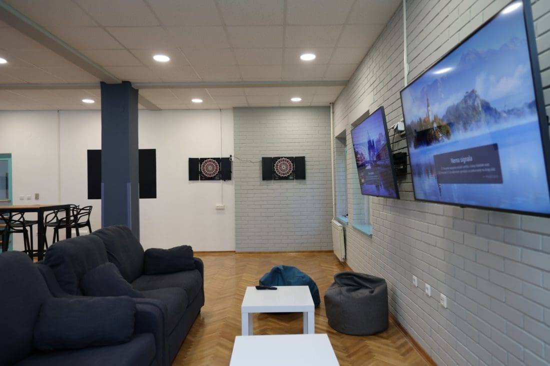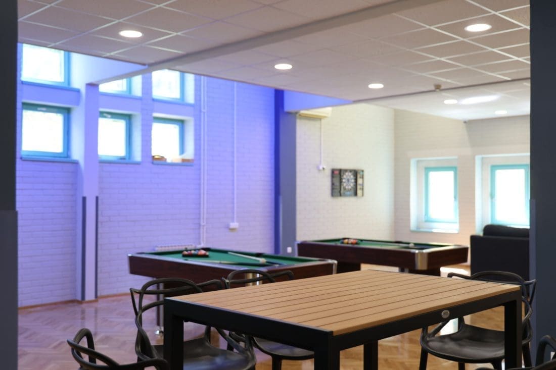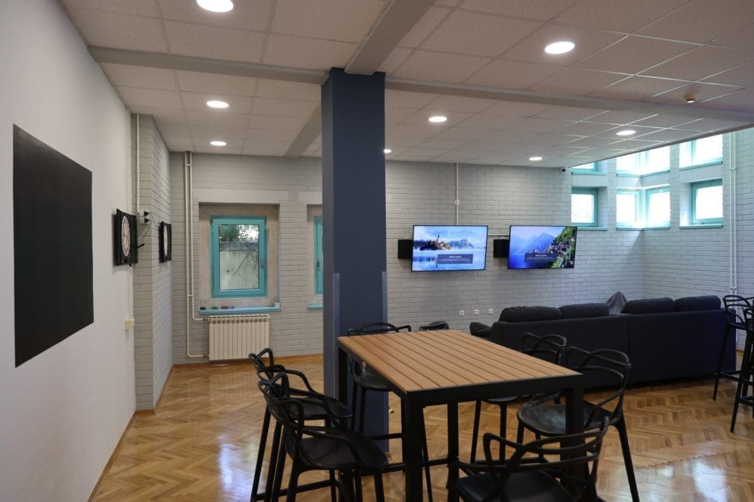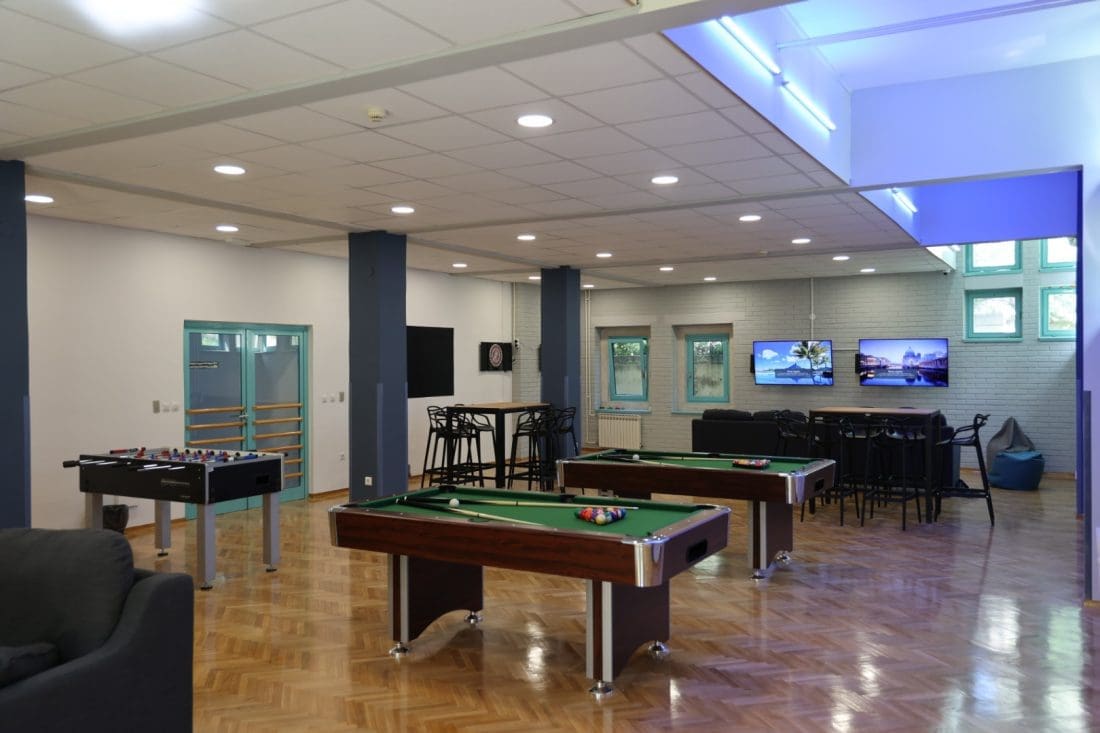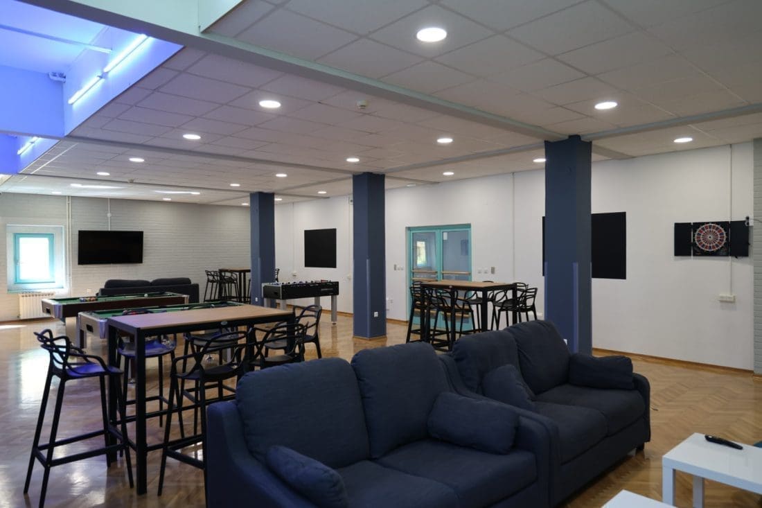 U 120 kvadrata su se smjestila dva stola za biljar, stolni nogomet, tri pikada, tri televizije s playstationima, barski stolovi i stolice s mnoštvom društvenih igara i fotelje.