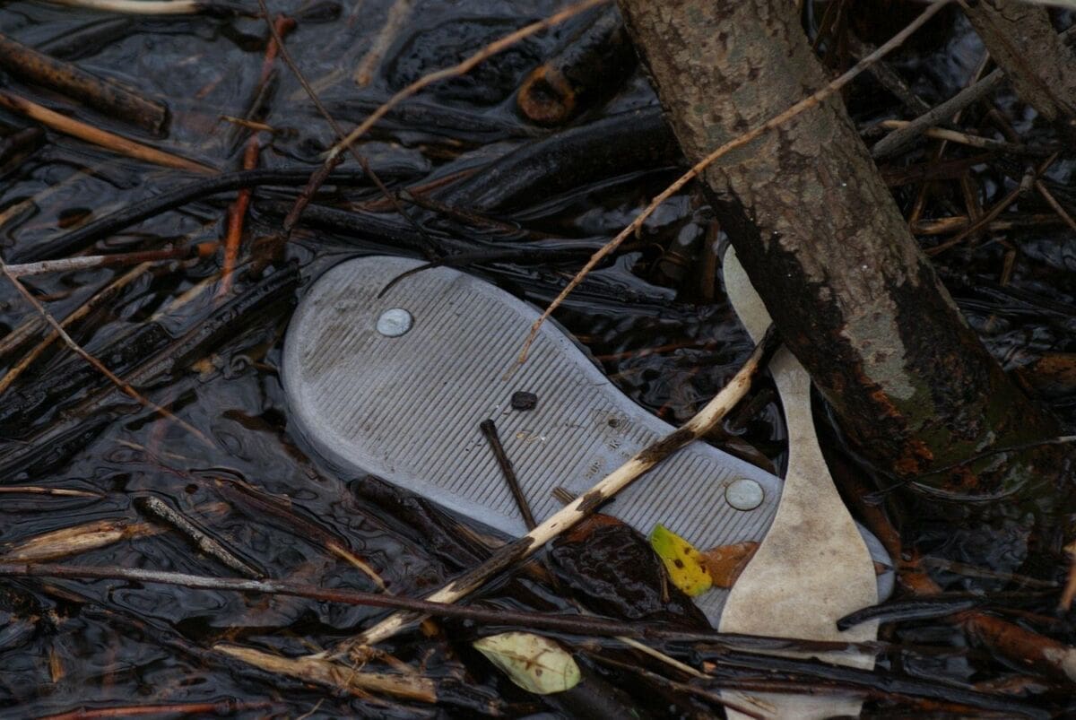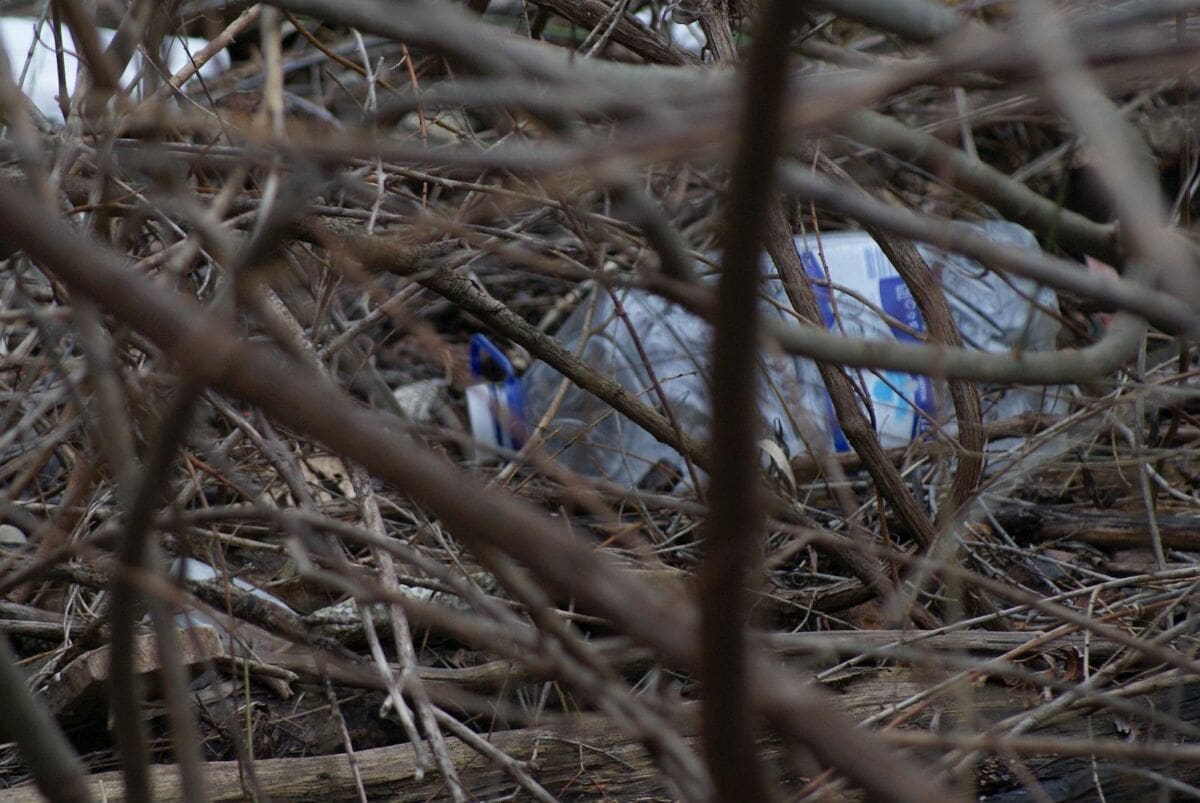 Čak se mogu primijetiti crveno bijele trake koje su postavili ribari za vrijeme jesenskog natjecanja. Još žalosnije, kante za otpad nisu se ispraznile od sredine srpnja prošle godine.