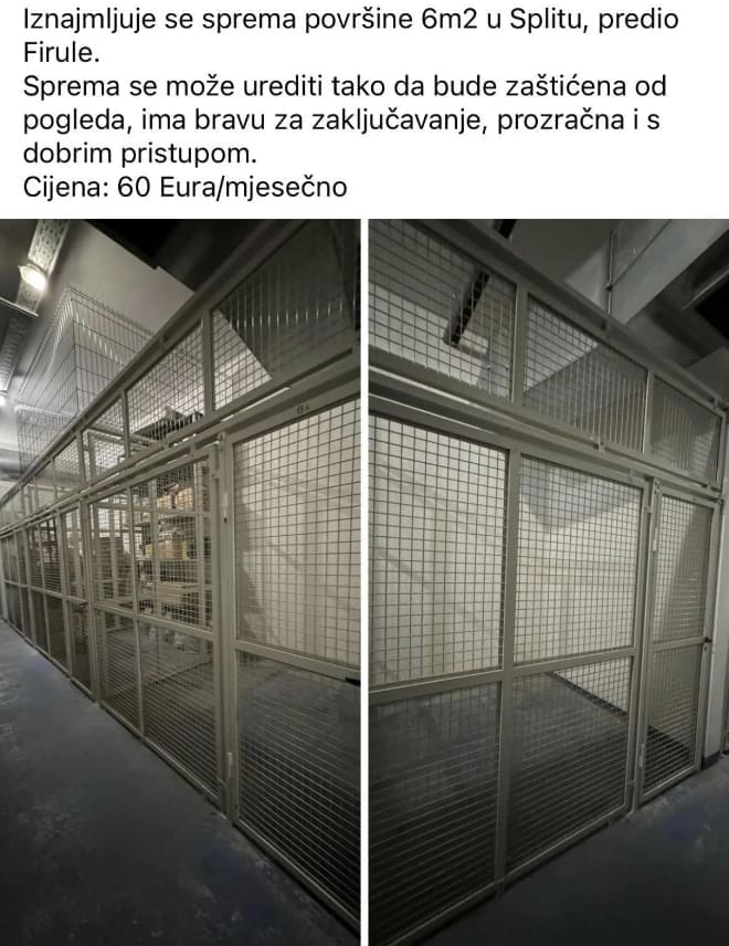 Tako je u jednoj popularnoj Facebook grupi Njuškaj Split Splićanin objavio kako iznajmljuje spremu površine šest kvadrata u stambeno poslovnoj zgradi u Splitu, predio Firule.