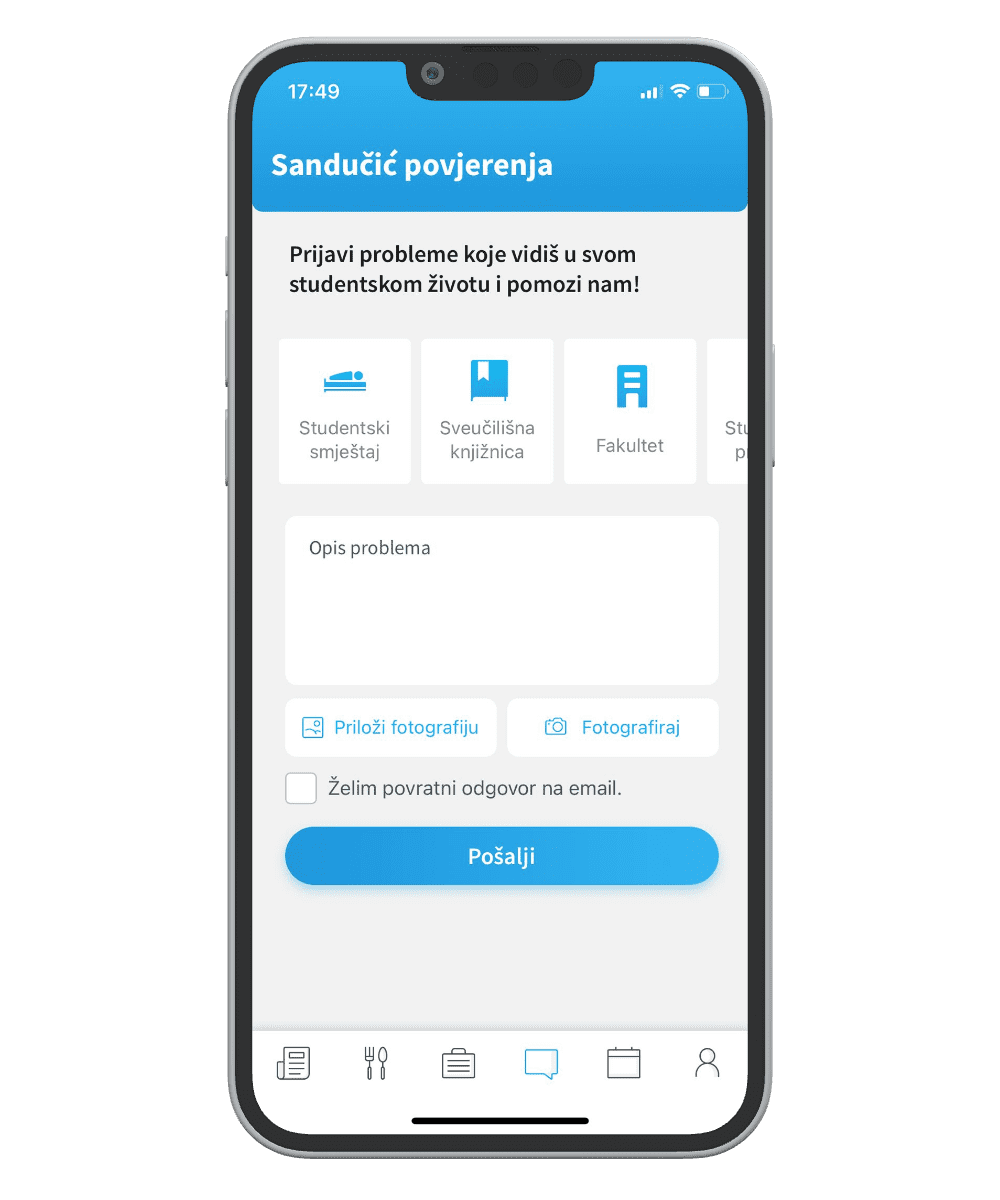 Ako do sada niste shvatili, riječ je o UniSpoT aplikaciji, koja je postala univerzalno mjesto na kojem studenti, njih aktivnih više od 6700 tjedno, mogu pronaći najnovije novosti vezane za svoje sveučilište. Studenti mogu provjeriti stanje na iksici, ocijeniti račune koji su dobili pri konzumaciji hrane u restoranima, pregledati dnevni jelovnik po menzama, ali i na kamerama provjeriti čeka li se u redu. Studentski poslovi kao neizostavan dio studiranja znatno su pristupačniji studentima korištenjem aplikacije. Naime, studenti unutar aplikacije mogu provjeriti status izdanih studentskih ugovora, koliko još mogu zaraditi do poreznog limita te pronaći najnoviju ponudu poslova Student servisa.