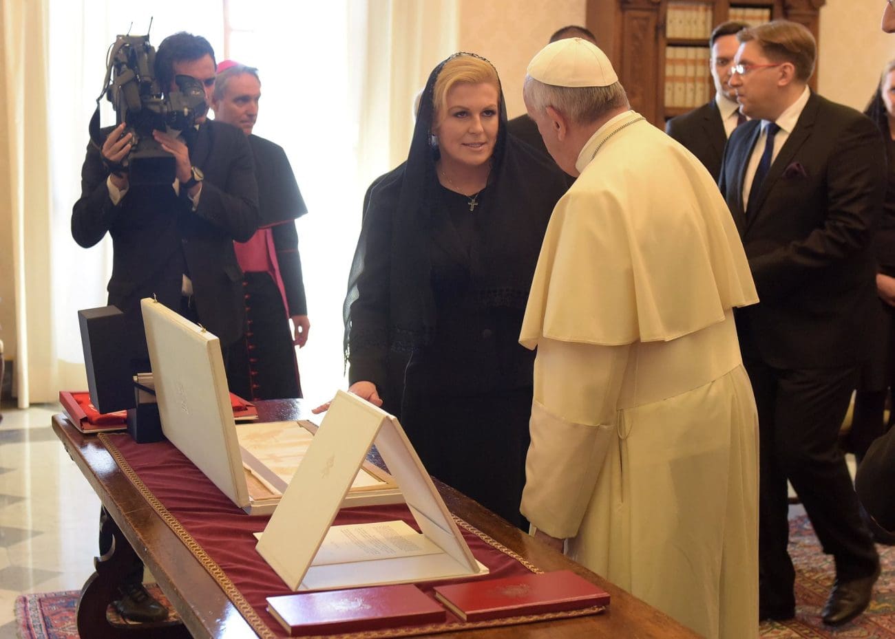 Za ovu svečanu prigodu, kraljica Camilla odjenula je crnu haljinu, a u crnom se pred Papom pojavljuju gotovo sve žene ovog svijeta, jer je to strogo pravilo Vatikana. Naime, prema vatikanskom protokolu žene koje se susreću s papom trebaju nositi odjeću s dugim rukavima, svečanu crnu boju i crni veo koji prekriva glavu, ukoliko dolaze bez pratnje. Međutim, postoje iznimke od tog pravila.