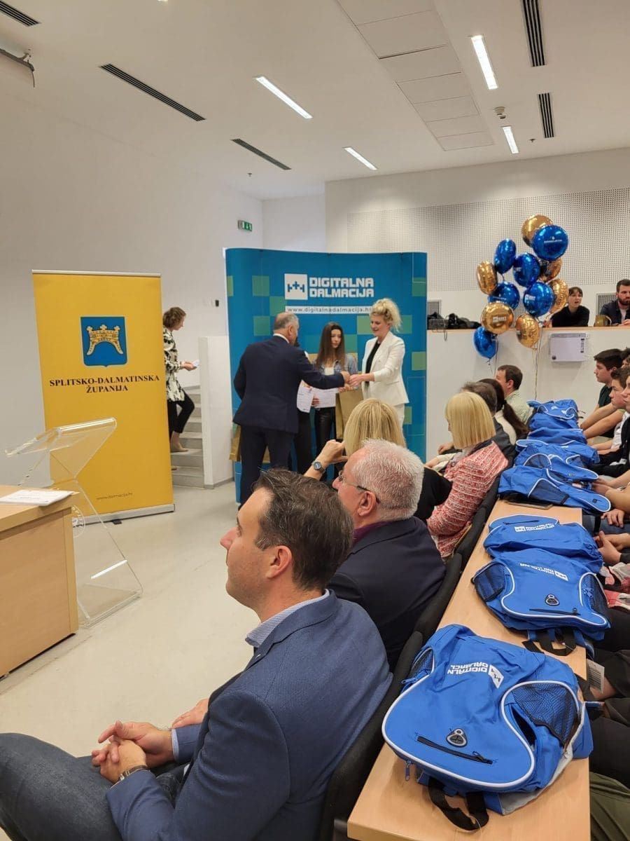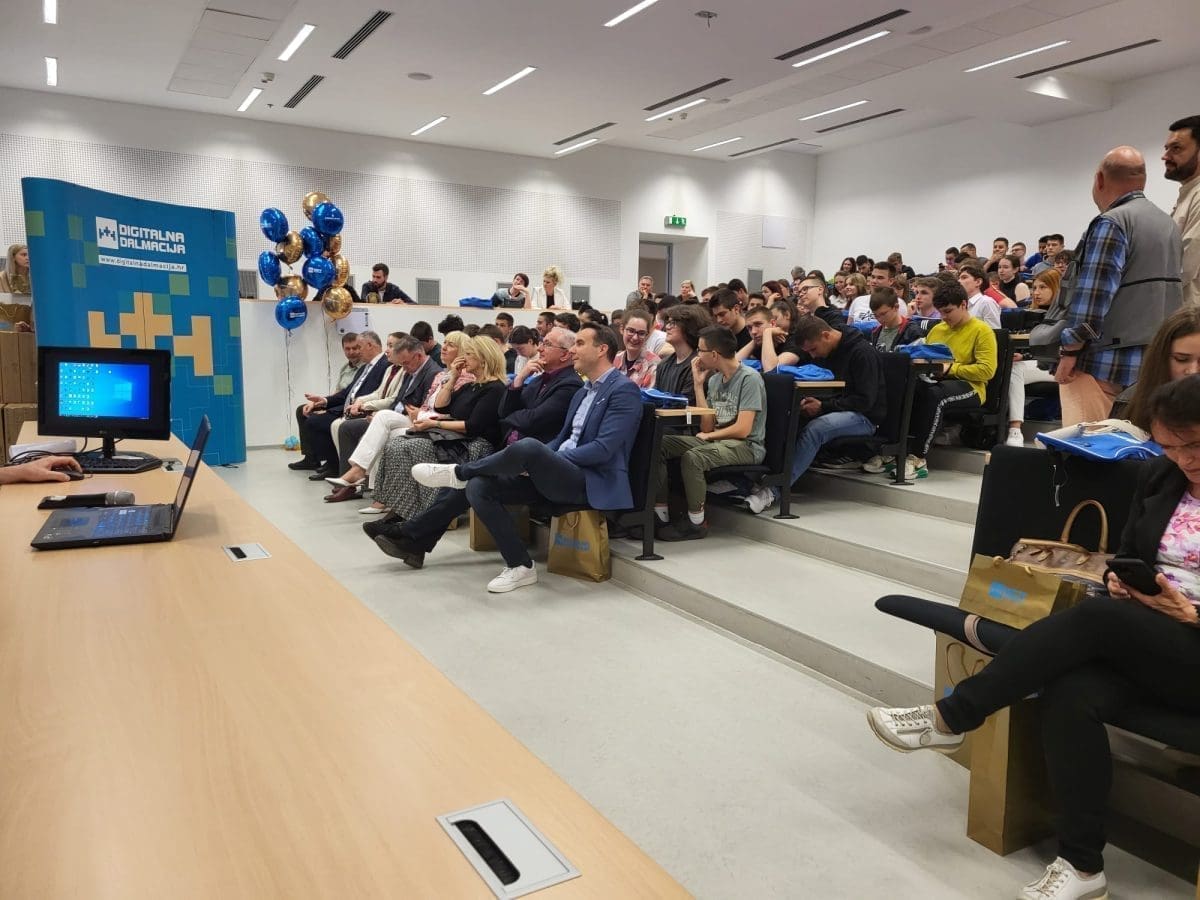 Na završnoj svečanosti EDIT CodeSchool održanoj danas na Prirodoslovno-matematičkom fakultetu u Splitu polaznicimasu dodijeljene zaslužene diplome o završetku ovog zahtjevnog programa, a najperspektivnijima i atraktivne nagrade u vidu monitora, zvučnika i slušalica.