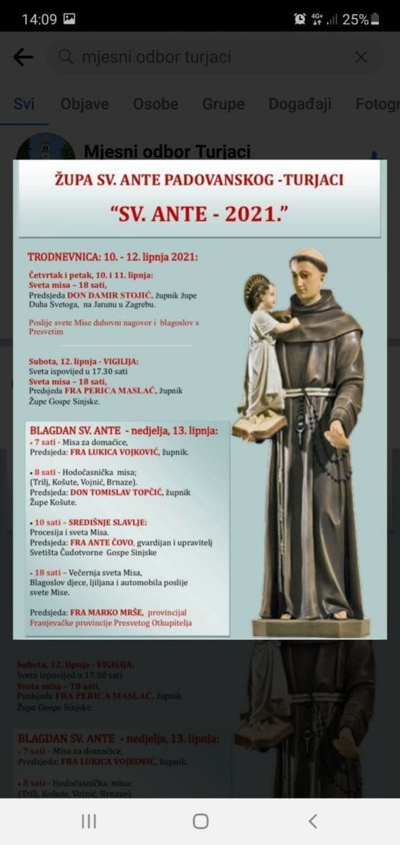 Sveti Ante zaštitnik je Turjaka, pa je danas u tom mjestu posebno svečano.