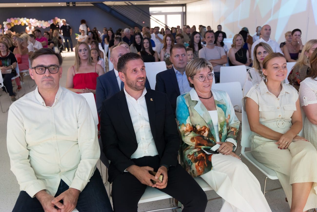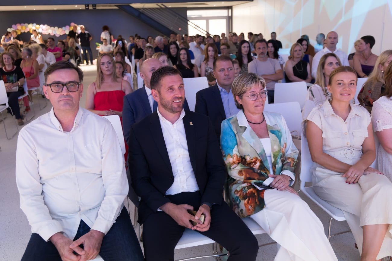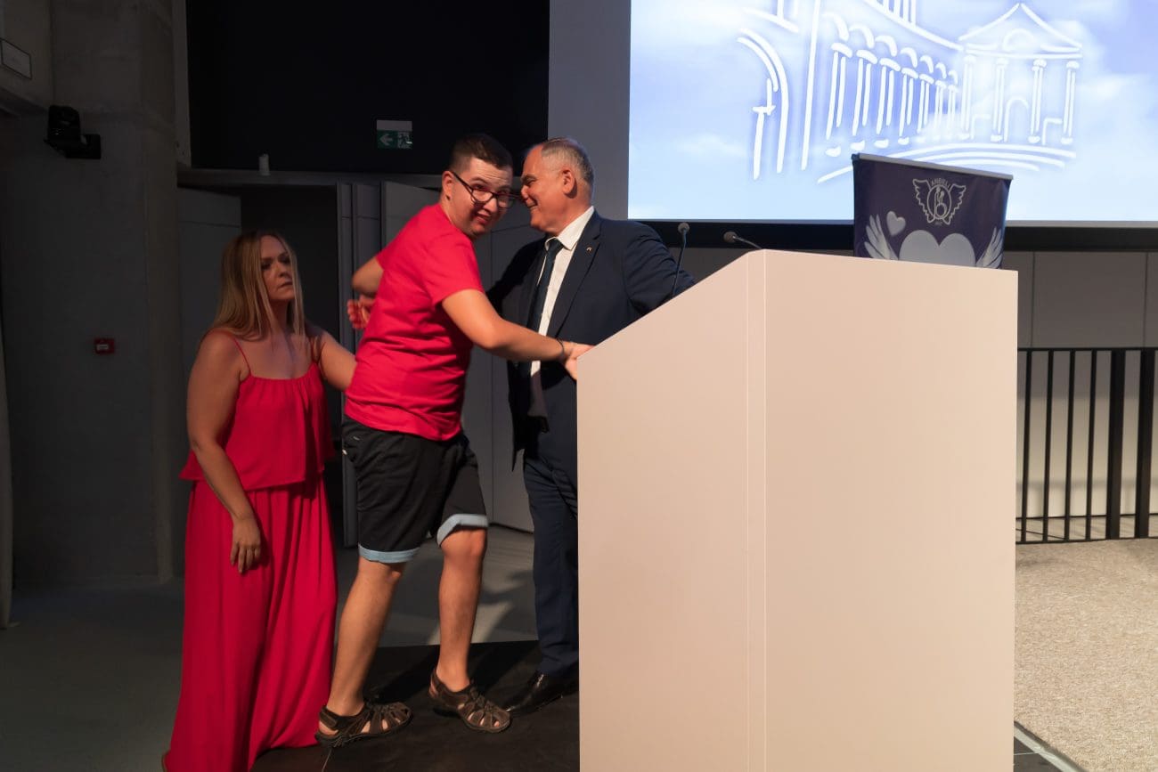 Korisnici centra Andrea Mutak i Antonio Čović svatko su na svoj način oduševili punu dvoranu Tehnološkog parka. Andrea je pri tome i zaposlenice udruge s dragocjenim iskustvom iz prve ruke, a Čović je oduševio sve svojom iskrenošću i direktnošću te je svojim govorim najavio župana Blaženka Bobana s kojim je izišao na govornicu.